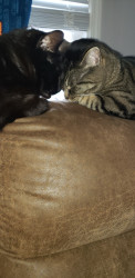 SLICK likes to talk alot and is so lovable everyone she's him want to kiss him.Bagheera is a sweetheart he greets you with a long stretch up your thigh just 2 amazing boys