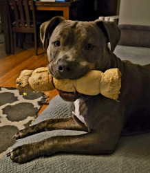 Learn MoreSlink loves his beef cheeks. He will run around the house with it in his mouth hoping and prancing happily with it. He also loves to roll balls around and chase them.