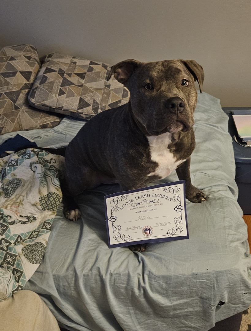 Slink is just all around the best boy. He loves people, other dogs, and his fur sister. We are working on him becoming a therapy dog to visit schools, and nursing homes. I would love for him to a great ambassador for the pit bull breed.