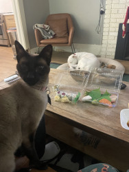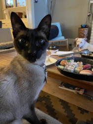 Learn MoreSlinky loves toy mice, but she likes to dunk them in water (especially toilets) to get maximum distance when tossing them. She’s VERY picky and will only accept sashimi or “cat tubes”.