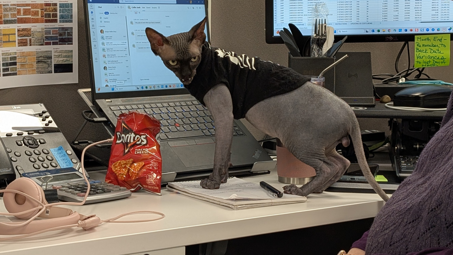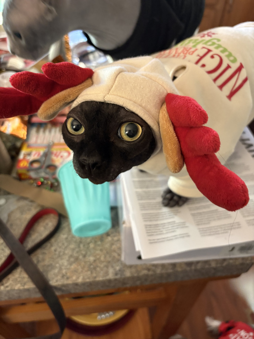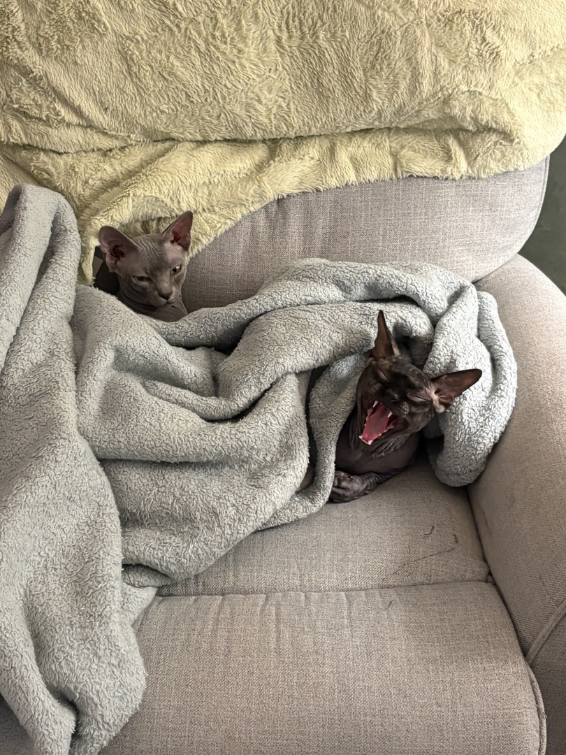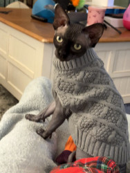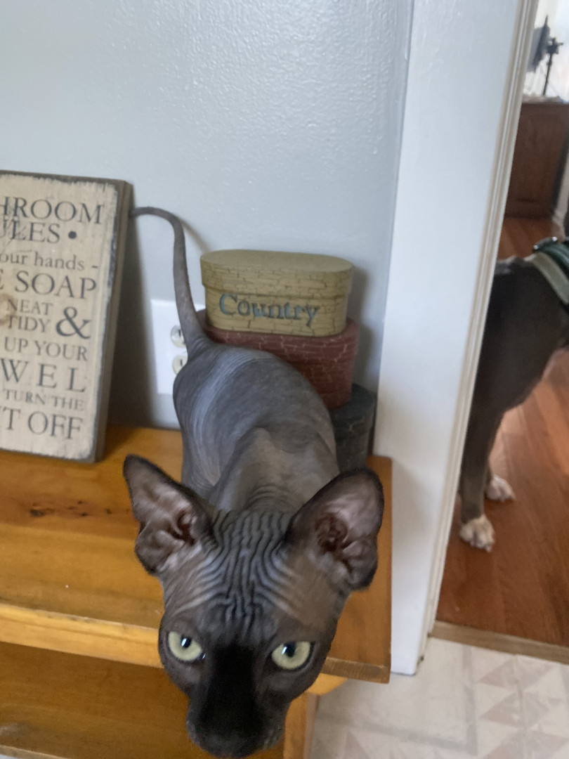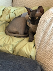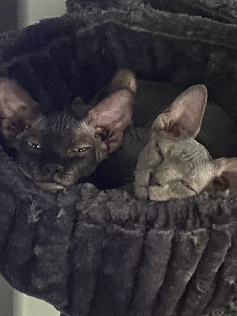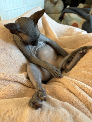 He is hairless and has the most wonderful peach fuzz all over his body.