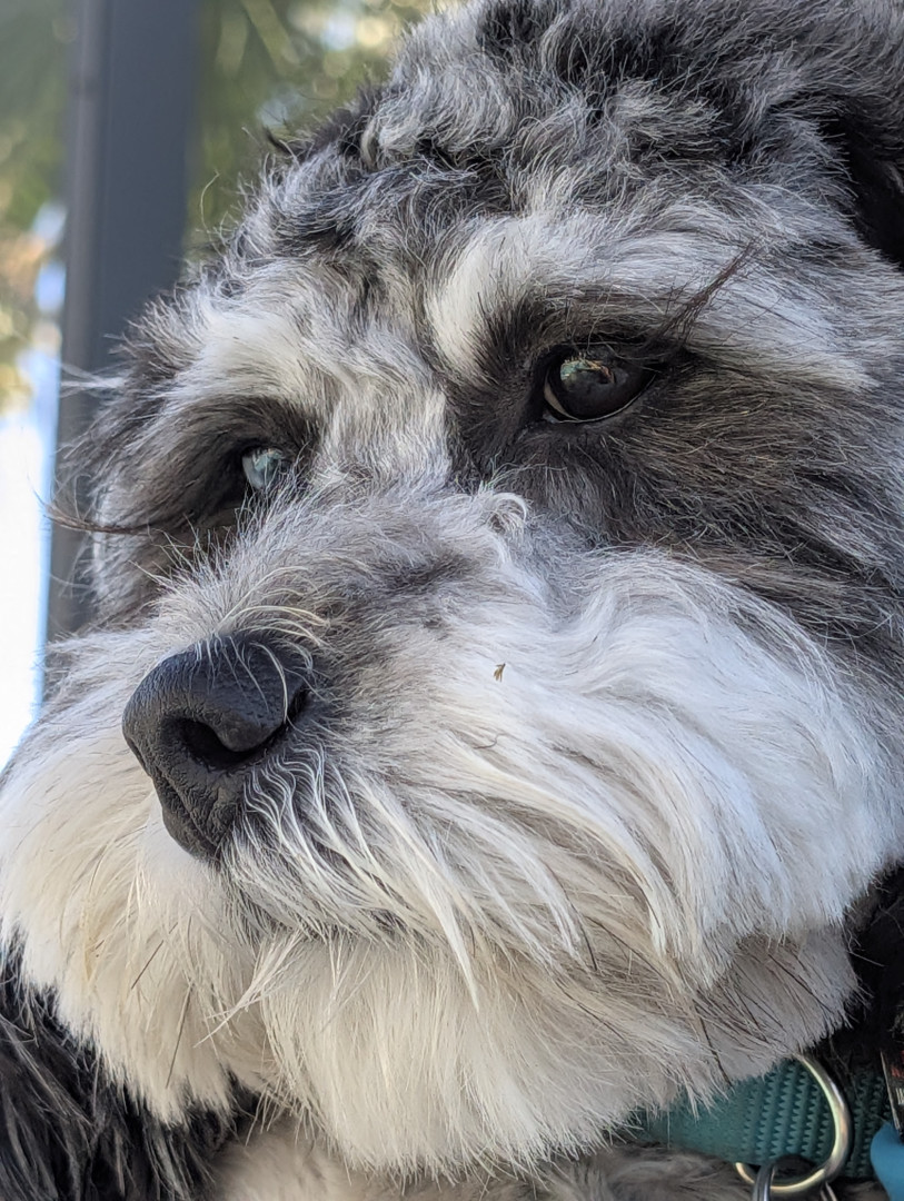 Smokey has unique fur coloring. He has a gentleness when you look into his eyes. He is the sweetest dog I have ever owned. He listens very well and he loves his mommy & daddy