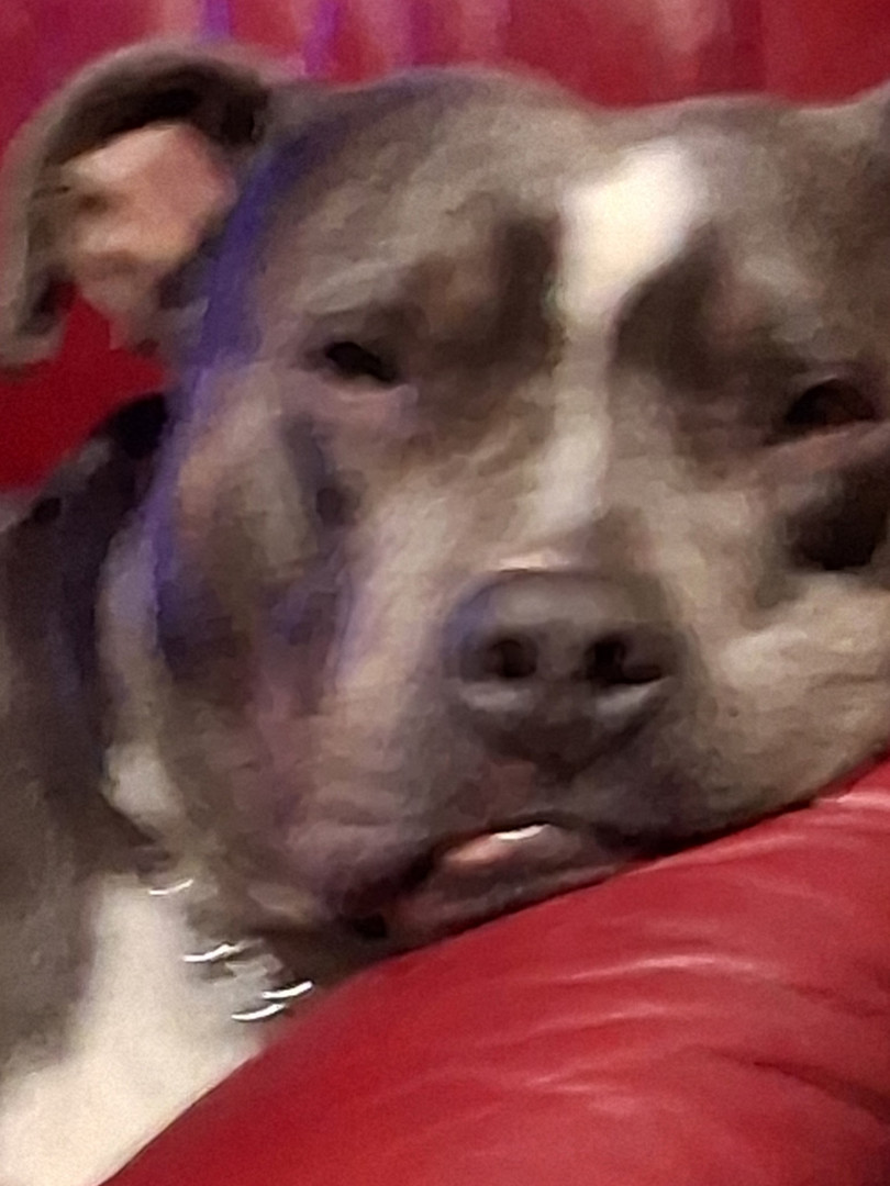 Smokey is a big 100 pound baby. He loves sitting in my lap. Loves to be loved on and pampered. Doesn't have a mean bone in his body.