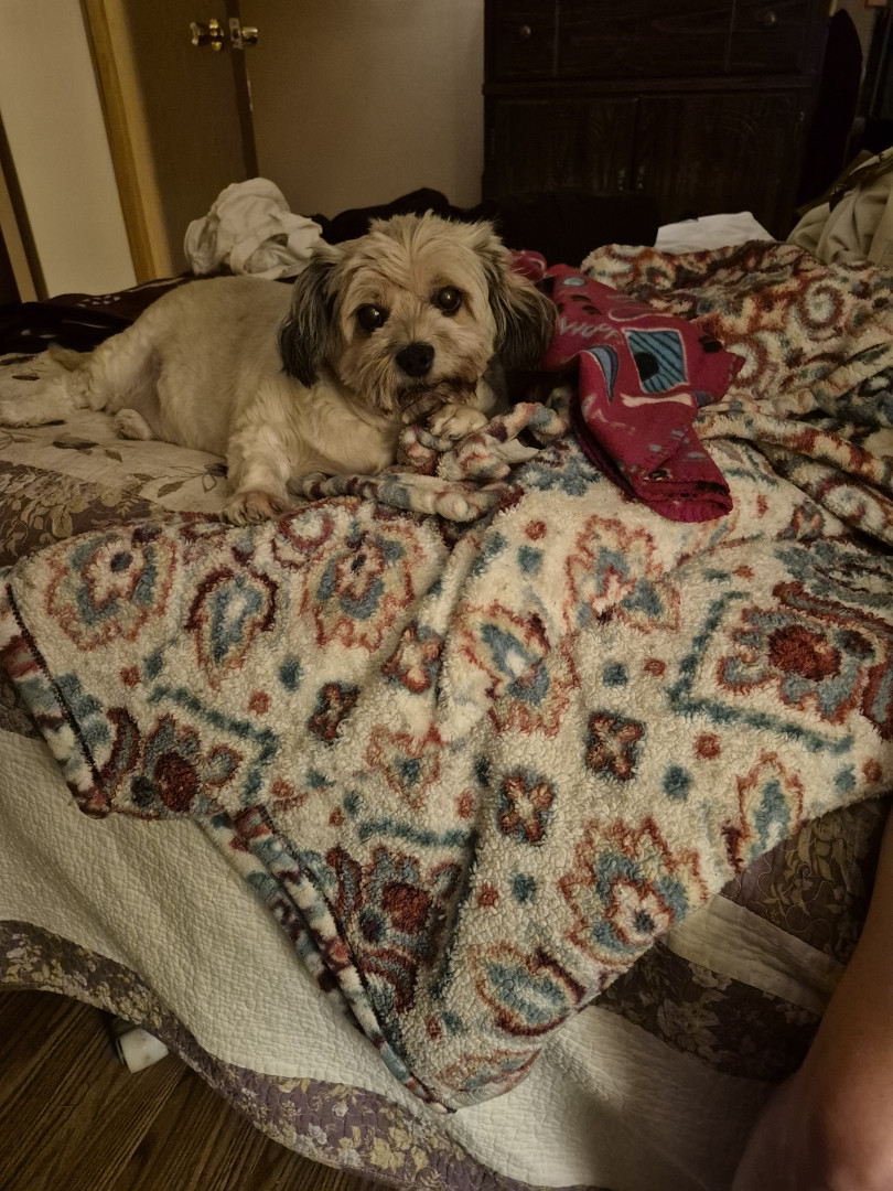 Smokey Jo Harris is a suport animal . He is very loving . He sits and shakes . I have had him sence he was 5 weeks old and he is going on 11