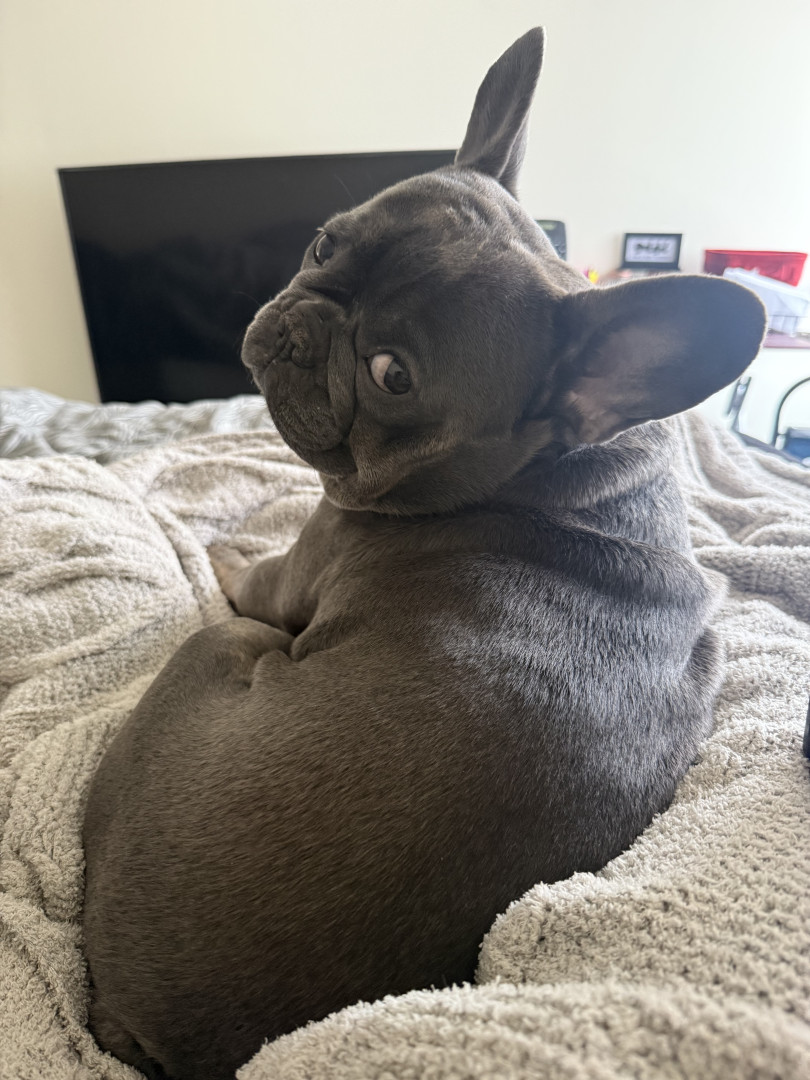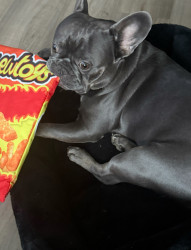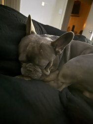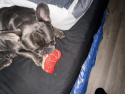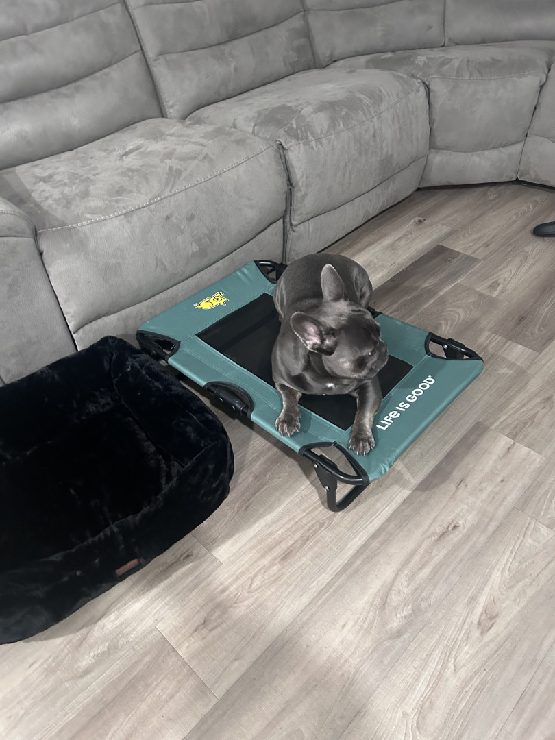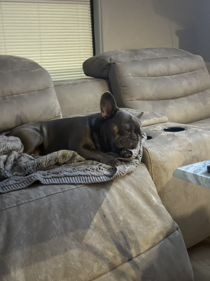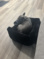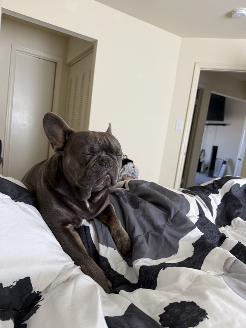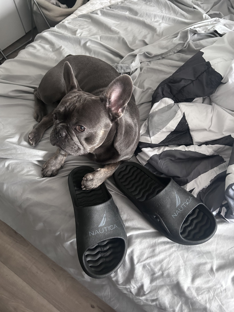 Smoky is a home dog he likes to eat and he loves to sleep as you could see. He’s always laying down. He loves shoes to put them on the bed .