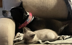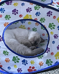 Learn MoreSmokey enjoys playing hide and seek with her best friend Steve and enjoys her new climbing tower. Oh yeah, and she loves chasing ice cubes as soon as we open the freezer door she comes running. She will also bring you her toy and drop it at your bed or chair.