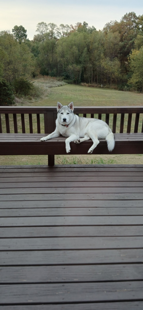 His a husky. Full of energy, loves his human daddy.