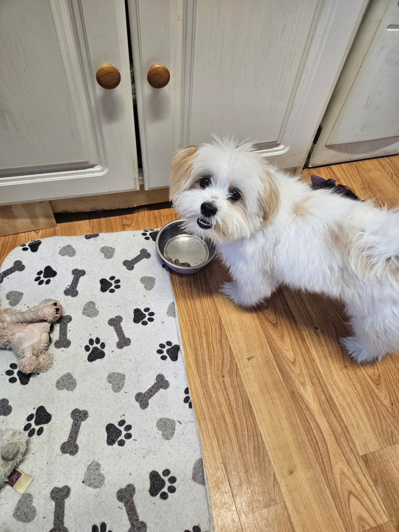 He is a 3 month old puppy. He is part Havanese and Pomeranian. He loves attention from people and going on car rides.