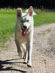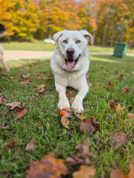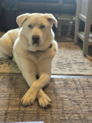 Smokey is great Pyrenees and husky mix. He's 2 1/2 years old. He's very protective and loves cuddling and playing fetch.