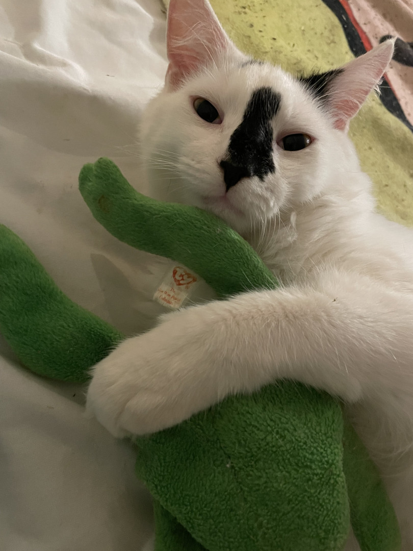 Smudge’s most unique quality is how effortlessly he balances intensity and affection. One moment he’s all speed and energy, tearing through the house with unstoppable zoomies, and the next he’s fully present, curled up and snuggling with purpose. He doesn’t do anything halfway—whether he’s playing or resting, he commits completely. That confidence, awareness, and trust make him special, like he knows exactly who he is and exactly where he belongs.