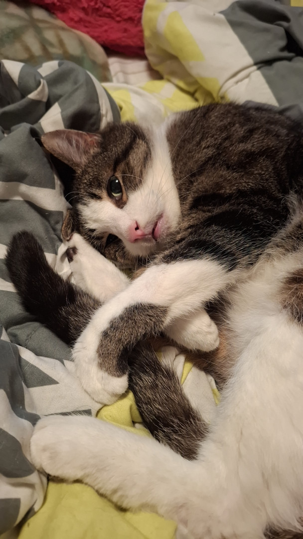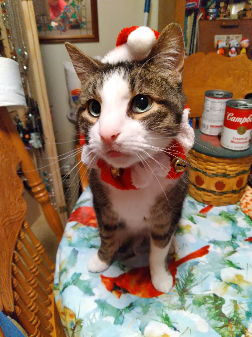 His favorite toy is his flowers with bells in or his cat burrito or pineapple.