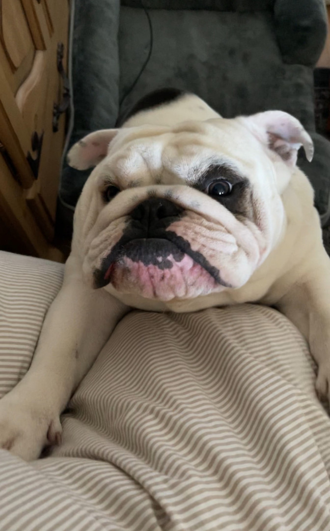 Snoopy is the poster child of a male bulldog. He talks… A LOT. He isn’t an athlete but he will win any all-you-can-eat competition.
