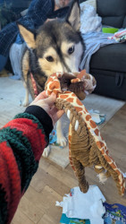 Learn MoreHer absolute favorite toy is her giraffe. It's a giraffe and rope combo that she loves to whip around and smack people with