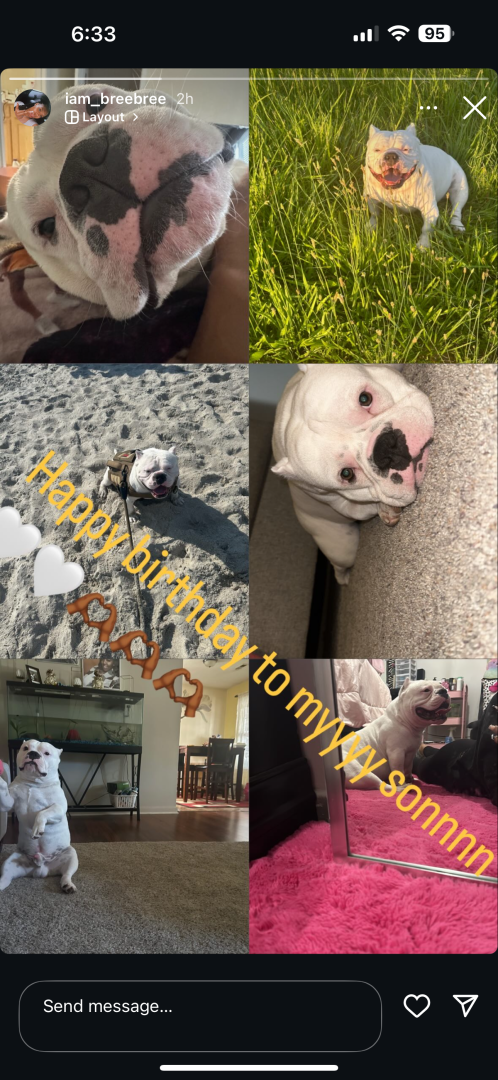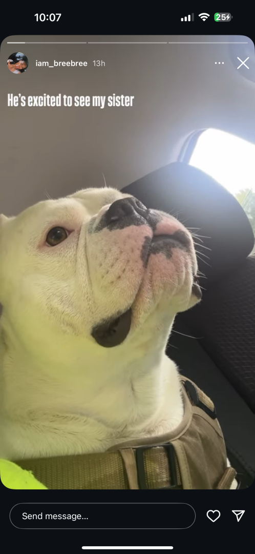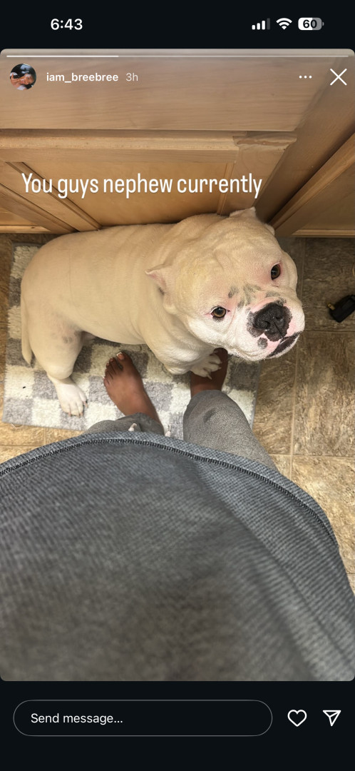 He is cute,lovable,friendly, he loves to play loves to be rubbed and us a great friend. He loves car rides and taking pictures. He like to go on walks and he loves the outdoors and the beach.
