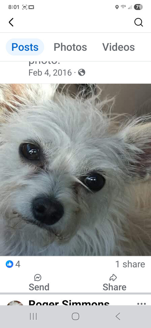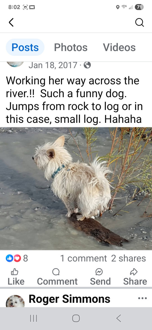 She has been on the news several times. Riverside county search and rescue dog. Been to 3 funerals , been to three weddings and in 1 wedding and was in a low grade horror flick filmed in Palm springs, ca. And on and on. Half of S. Ca know her and now that we have moved, Baxter county Arkansas now knows her well. But most of all she killed a big rattle snake while it striked my leg. She killed it. Yes, I love Snowball sooo much!