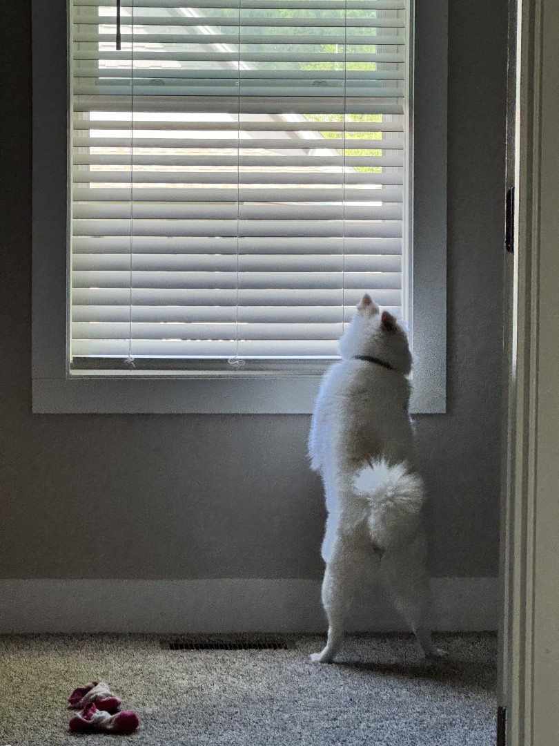 Eskimo Spitz are great dogs to have and are very loyal. If I’m working and she gets hangry, she’s comes and huffs and puffs at me it’s lunch time or she needs to go out. Couldn’t imagine our home without her!