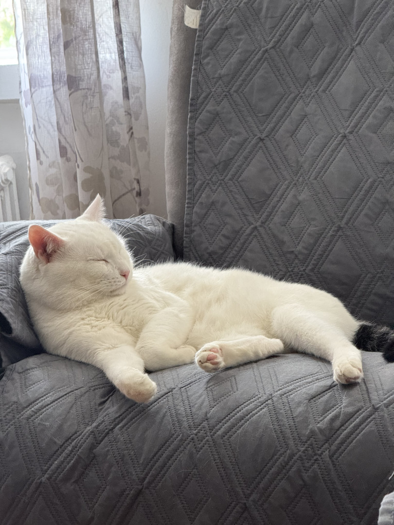 Walks with confidence, tail high like royalty. Gives side-eye instead of cuddles when annoyed. He Meows back as if arguing and demands food.