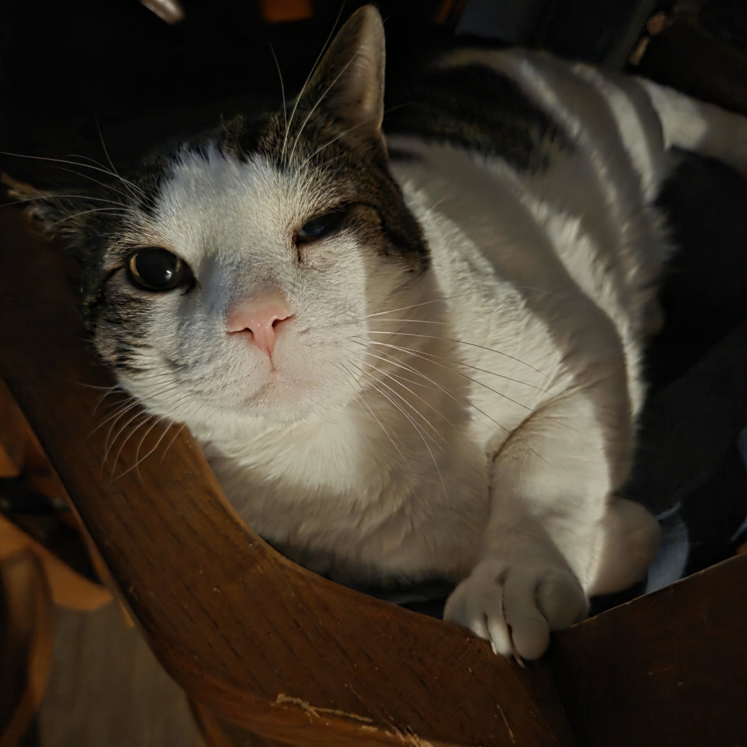 Snowy came to our home during a snowstorm. He is an absolute treasure. He is my wife's soul cat. Love him to pieces