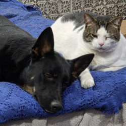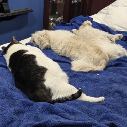 His love for us and the other animals The first 8 months were a struggle. He was not easy to work with. We knew he came to us for a reason he wasn't well he had calluses all over his feet and he immediately bonded with our blind cat. We have 6 cats including Snowy and he has made such a turn around. He gets along with every baby and looks out for them like a parent. He hovers around 28 pounds and he's an absolute love bug. his best quality his unconditional love