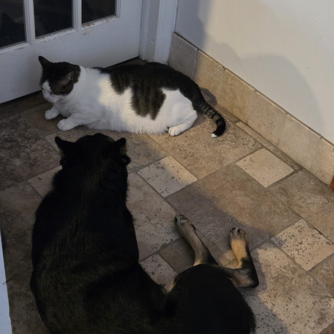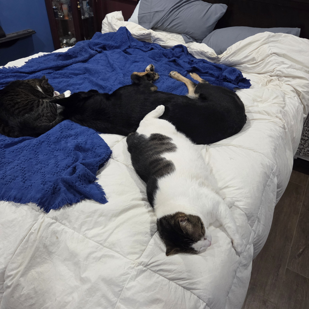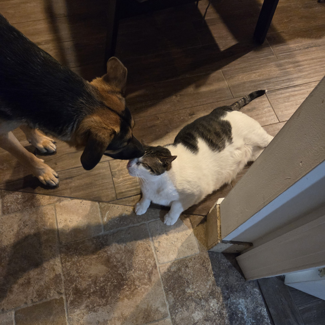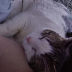 Snowy really enjoys his cat treats and laying on the window sill. He is my wife's soul cat. He loves lounging aorund with my wife and is her shadow. She can hold him in ways noone else can. He loves to play with our other rescues which include 2 german shepards just over a year old. He's a big muscular love bug since living with us.