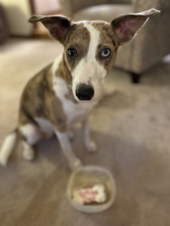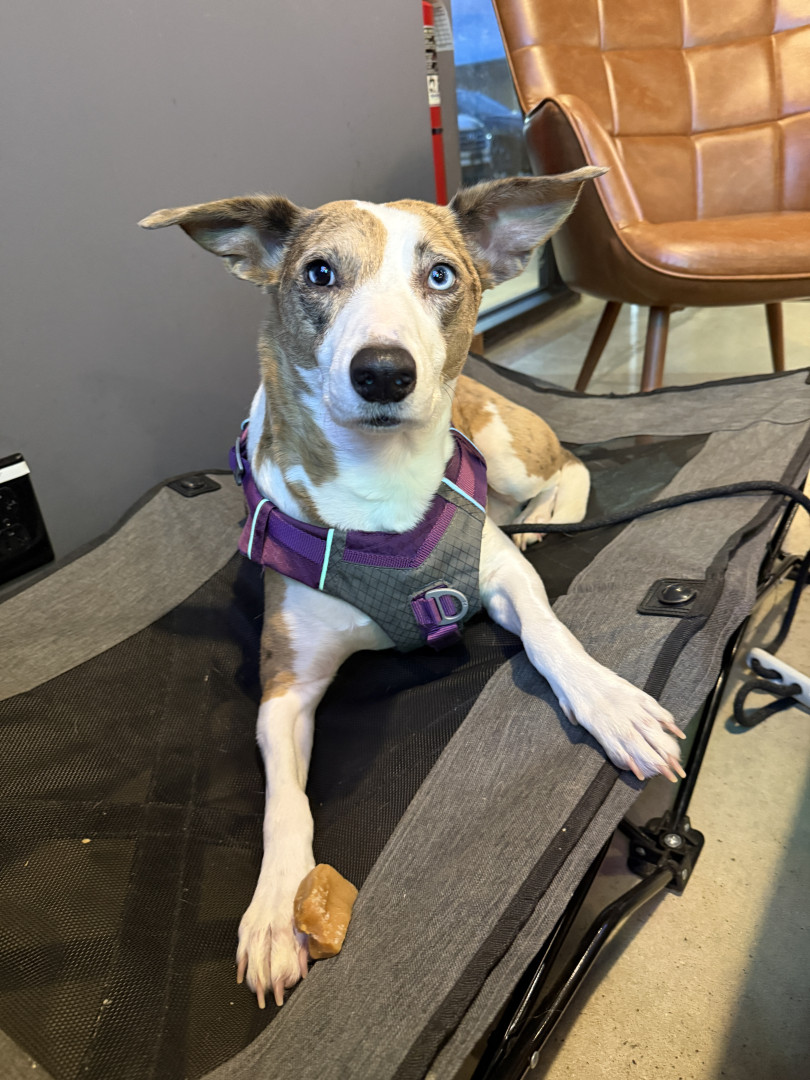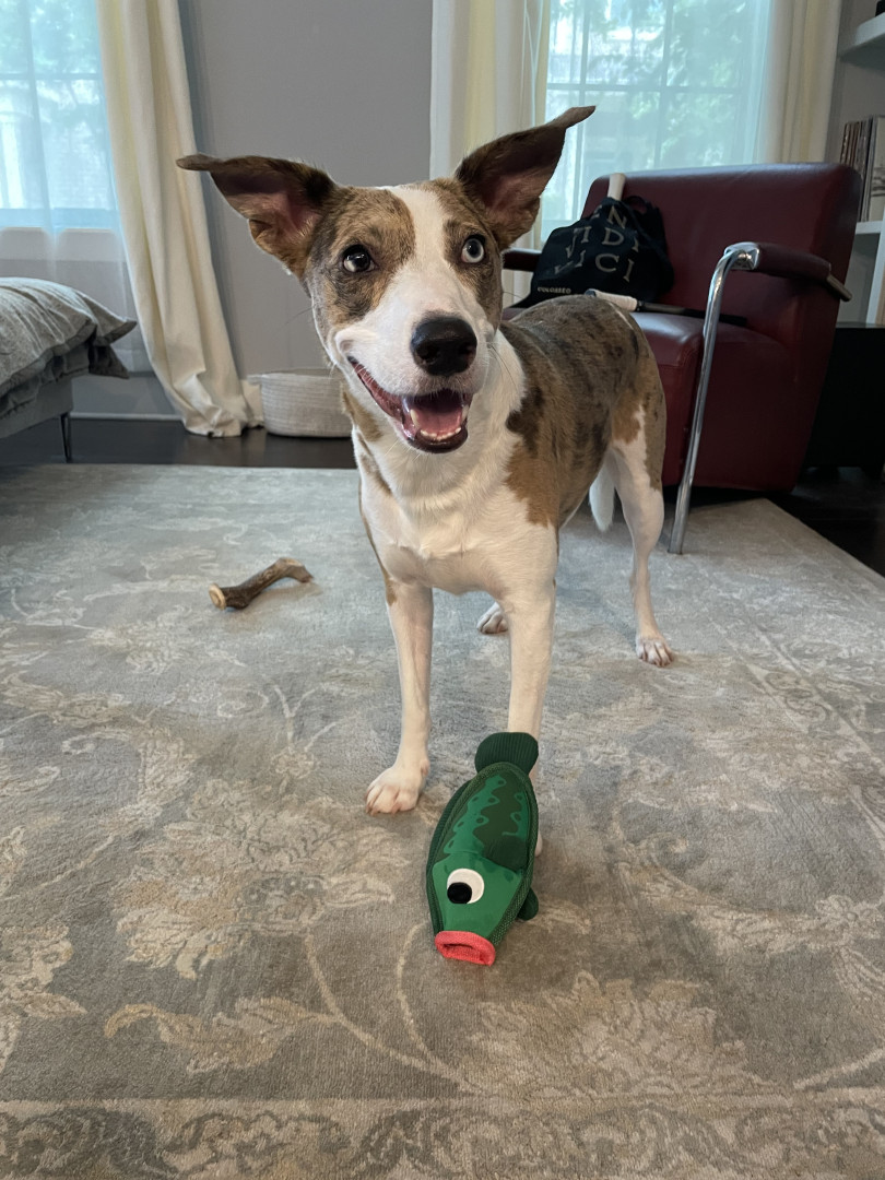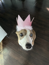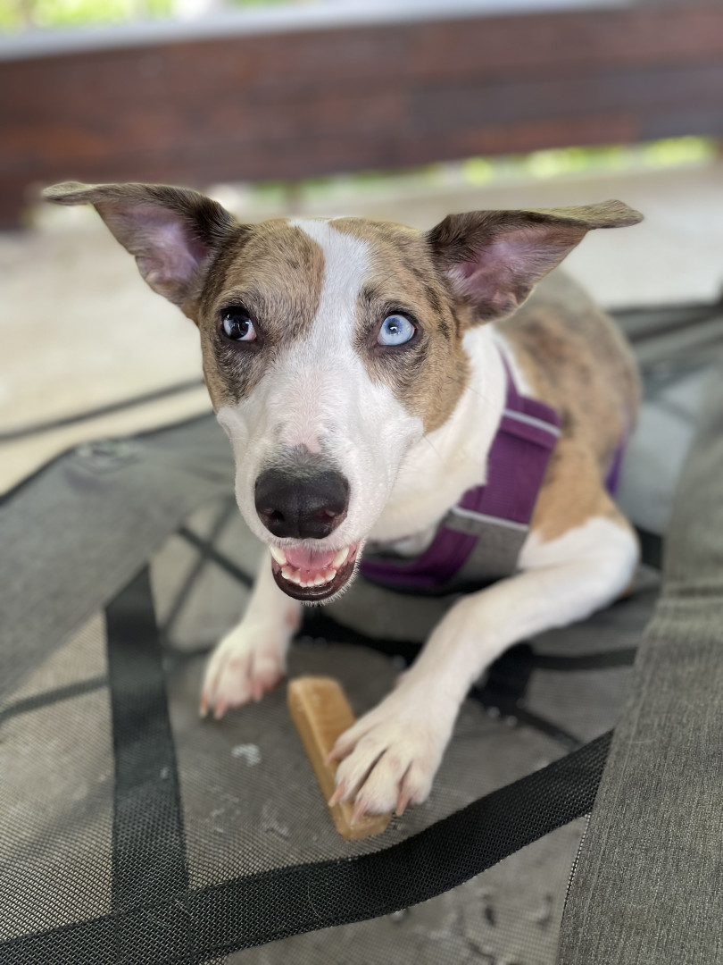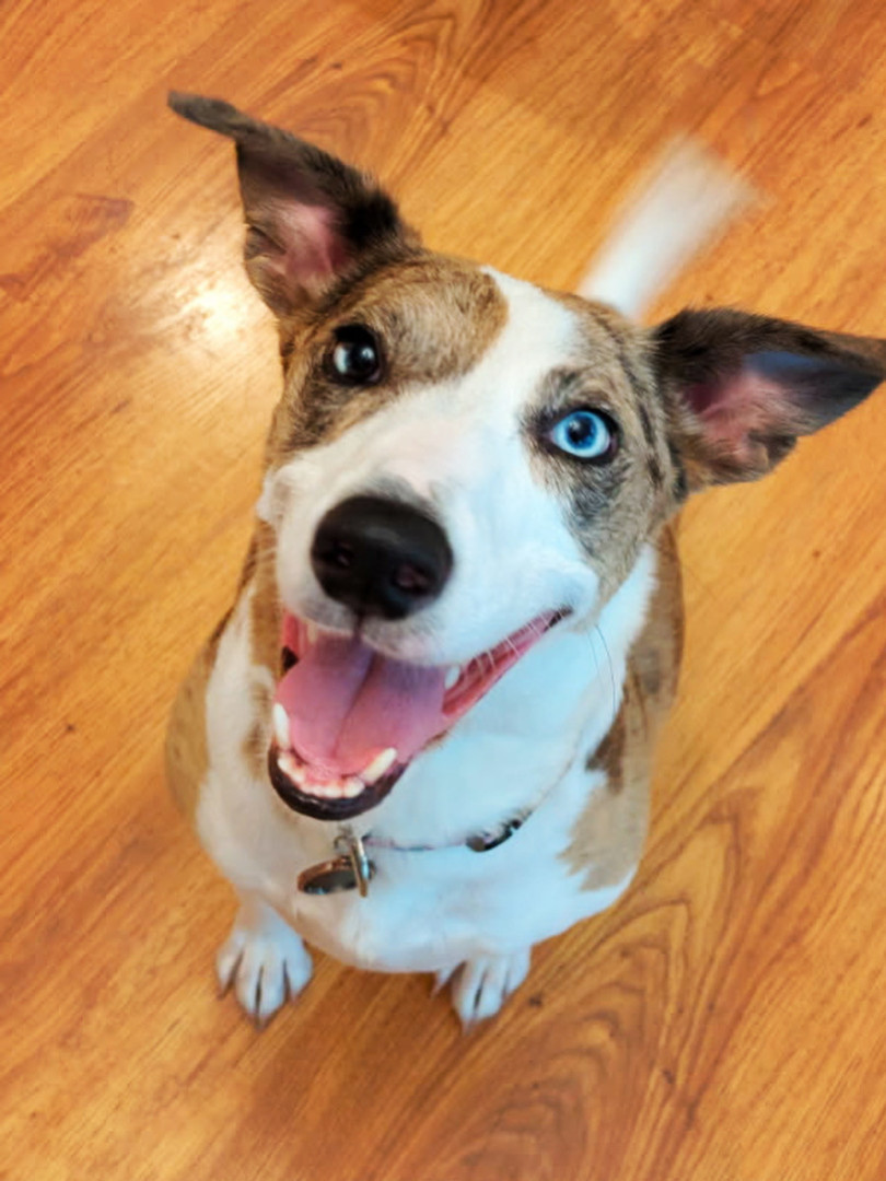 Like a great wine, the perfect blend. Super mutt rescue girl representing everything dogs are known for … loyal, sweet, attentive, & hungry!