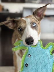 Sonoma loves big toys that she can catch and thrash around. Currently she rotates a monkey, a sloth and a beaver. Unfortunately with the thrashing we have to watch out for our liquids on the coffee table! She’s a healthy girl who loves watermelon, cucumbers, and mandarin oranges. But her favorite treats a low calorie Crunchy O’s!