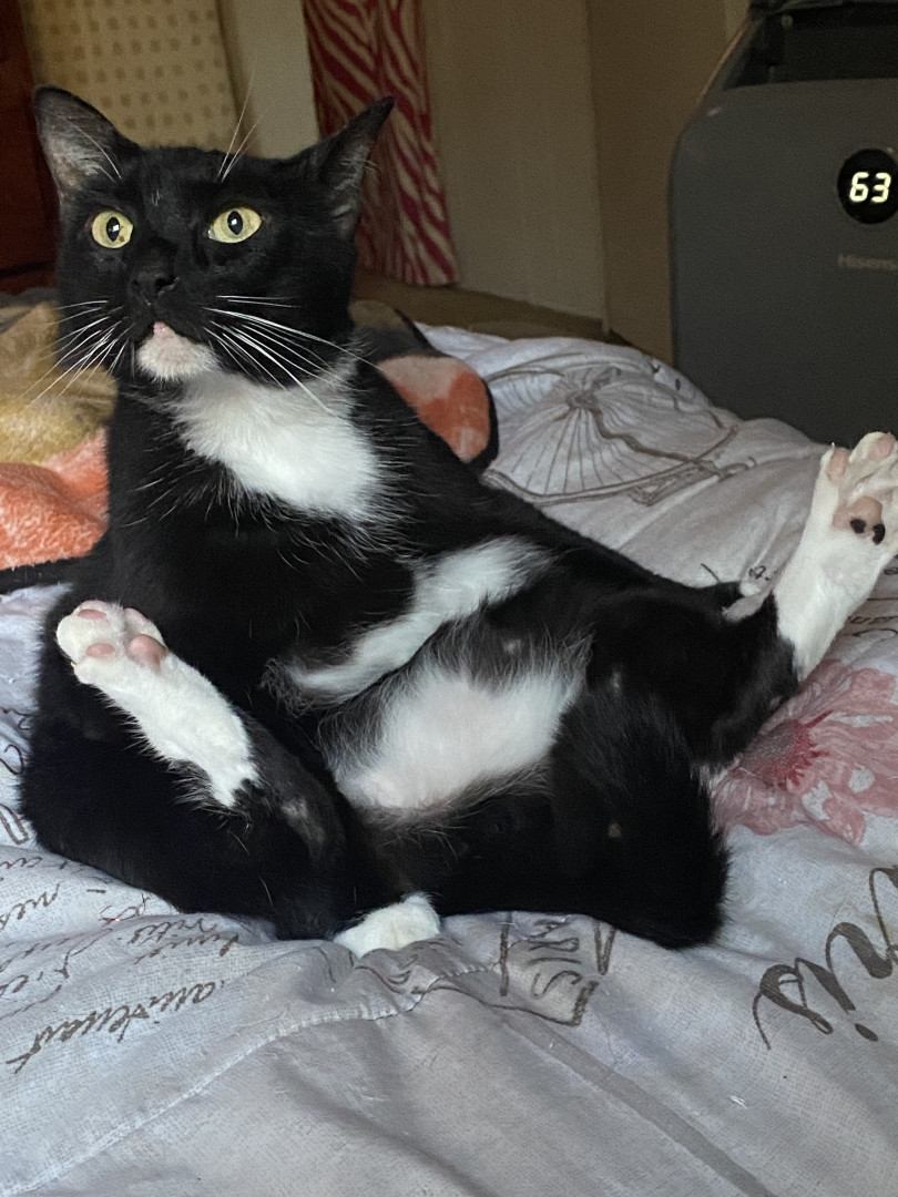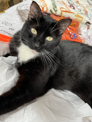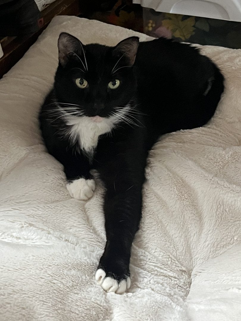 Sooty is the most sweet,thoughtful, loving, playful cat . He’s 11 years old . He is a tuxedo cat. He’s very handsome and sophisticated.