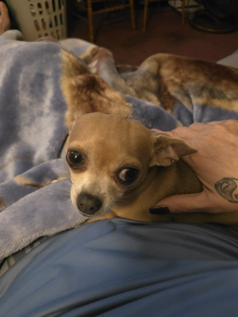 Sophia's go to treat is meatballs. She doesn't have a toy. Sophia's favorite past time is cuddling up on the couch with me.