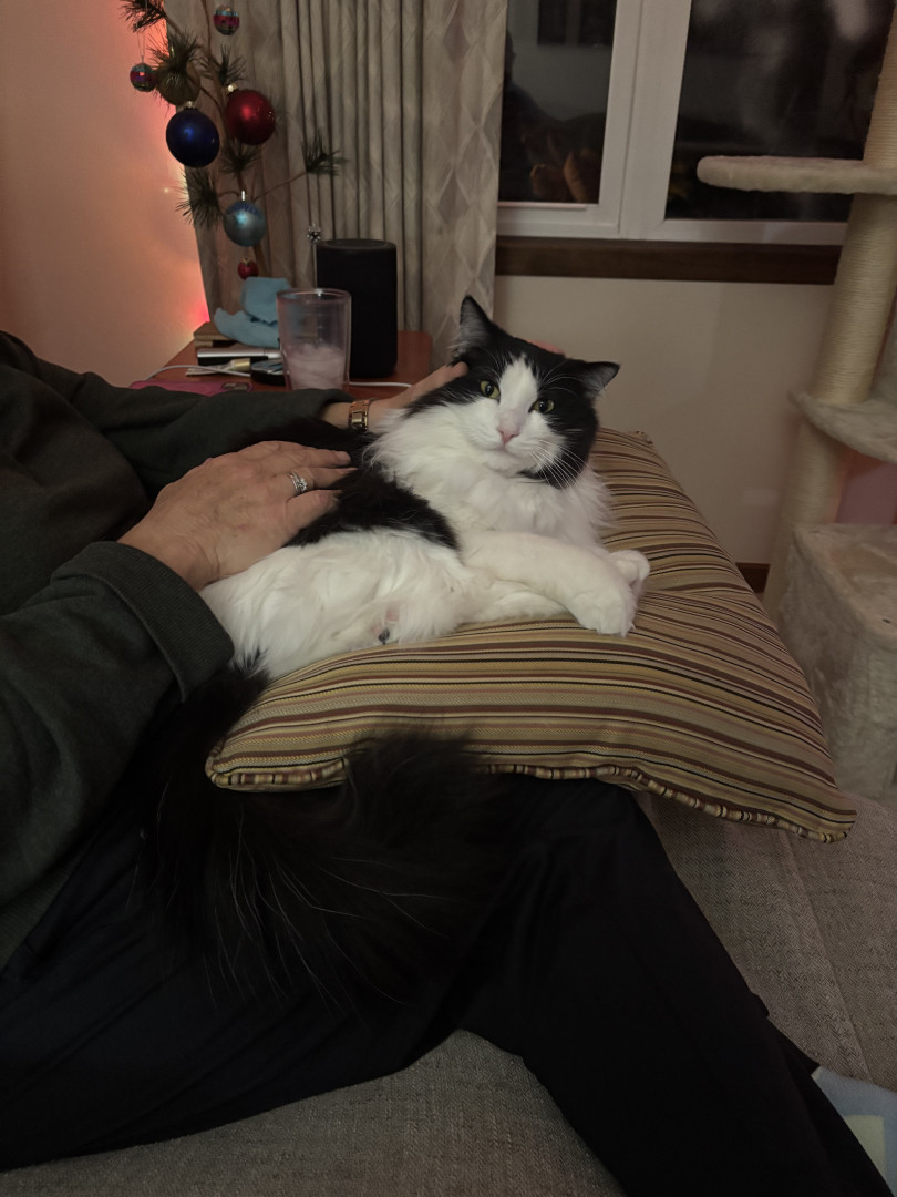we sort of adopted her from a family friend who could no longer take care of her. i wasn't sure about another pet at the time but she is a blessing and fun to watch. she will crawl into bed in the morning so the wife has to move over a little to make room. i think she wants us up to get her breakfast.
