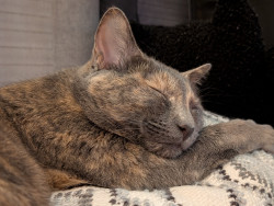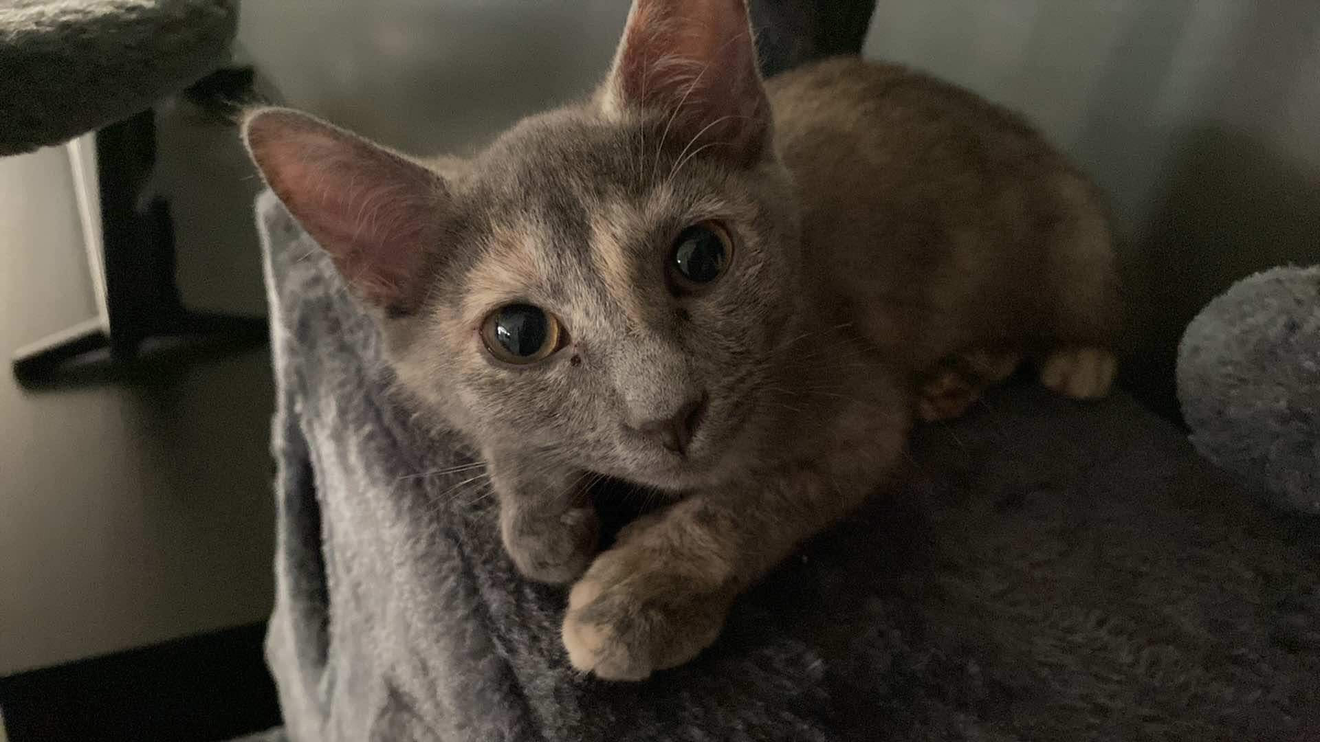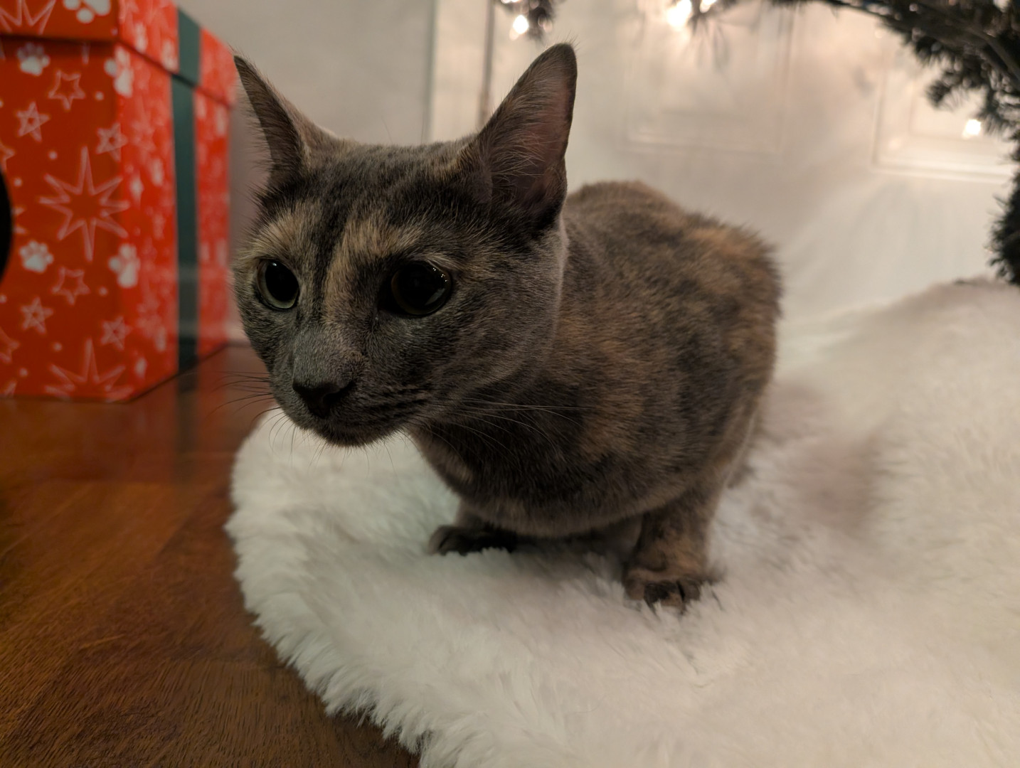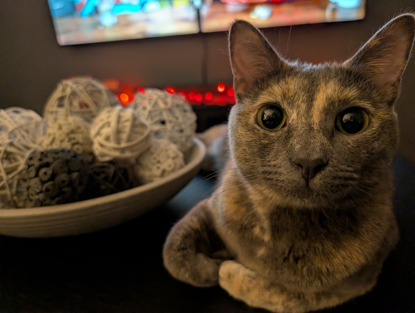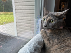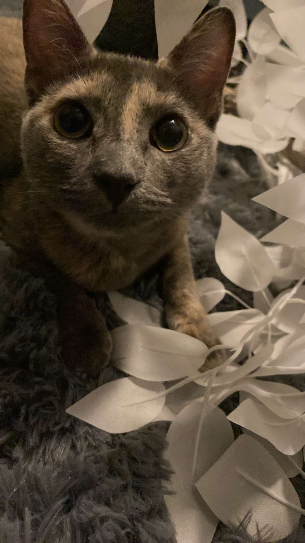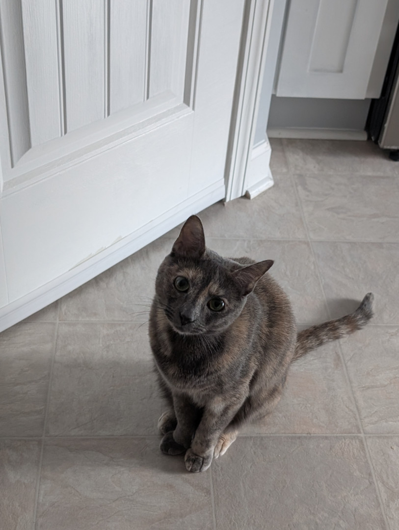 Her meow. It's precious and not like any other meow I've ever heard from a cat. When one of her pom-pom balls goes under the oven, she will sit there and meow until someone gets it for her (even though she has several others around the house).