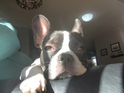 Our girl is a Frenchton. That’s half French and half Boston bull. She is our baby and to be quite honest she knows it.