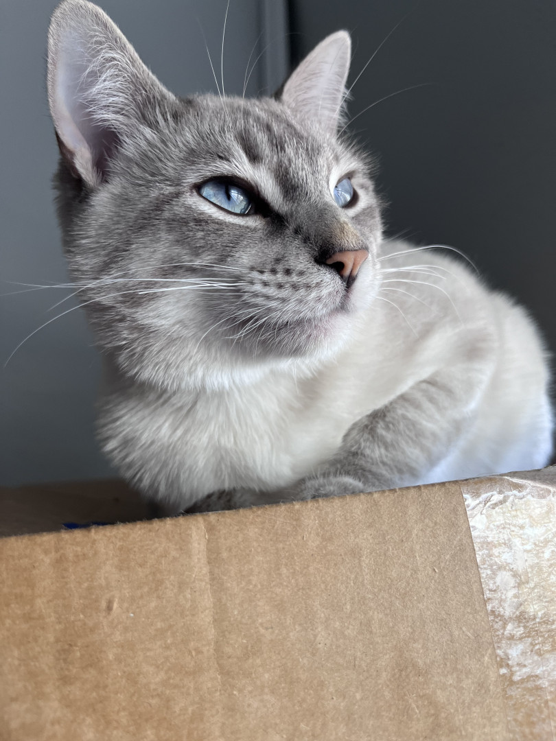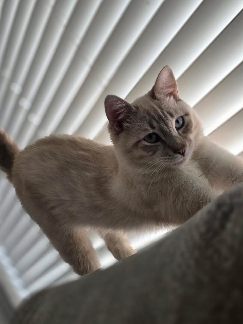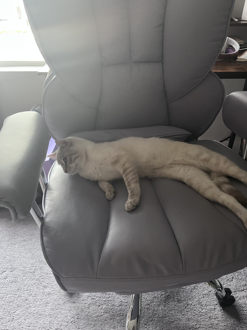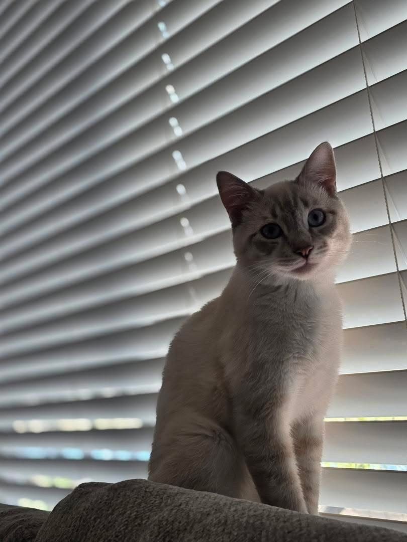 Sovereign is America’s cat! He started from humble beginnings born on the streets eventually finding a foster home and then adopted by me. He’s mixed breed Maine coon and Siamese symbolizing America’s diverse culture. Most importantly he is hardworking M-F he sits along side his mom in his designated spot on the desk working. Sure he sleeps on the job but he gets paid just to look cute.