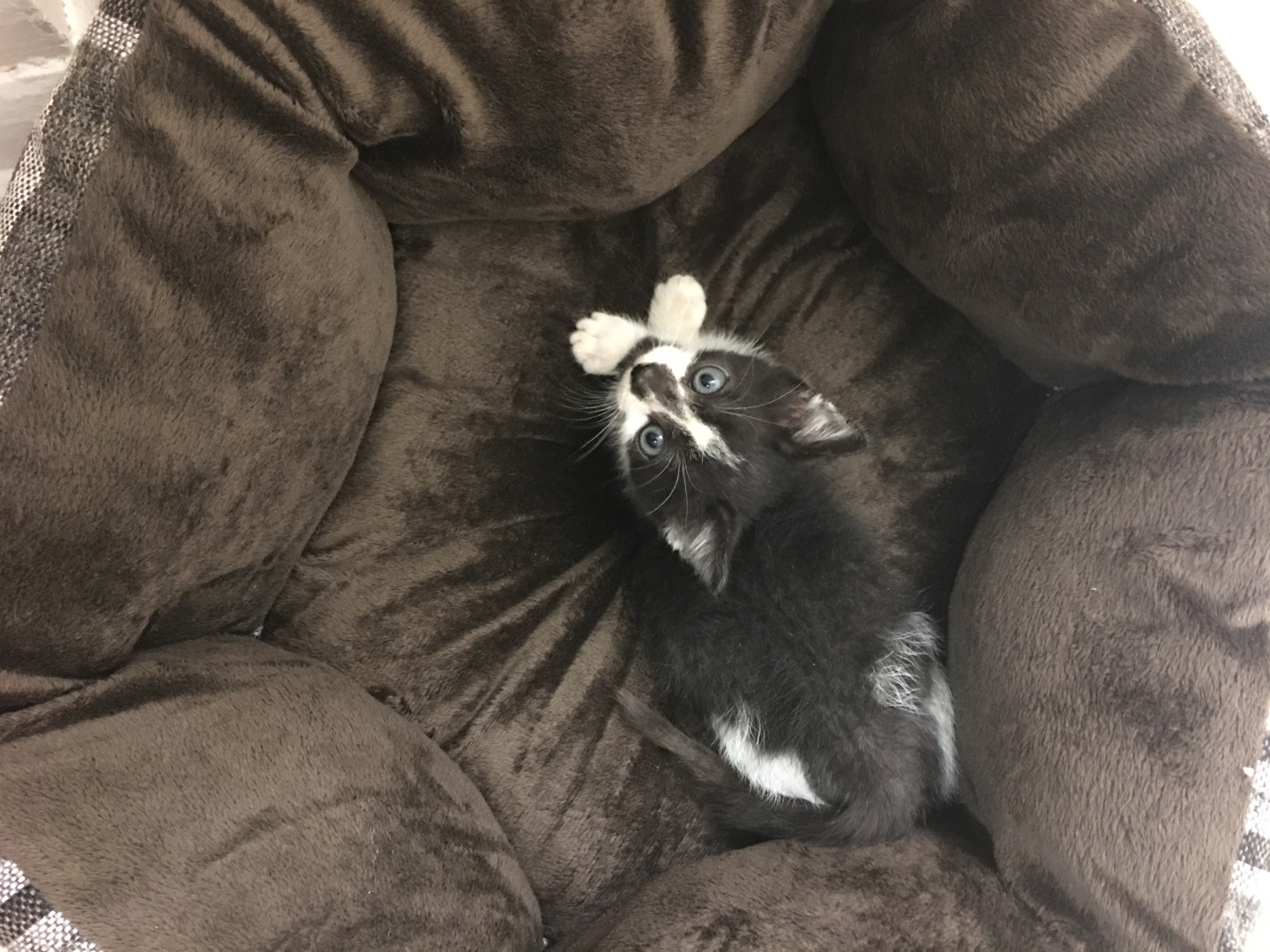 Sparky was founded in our parking lot on 2017, at this time he is a little baby cat immediately my mom and me love him. He is a lovely cat.