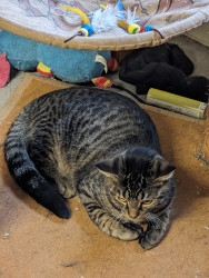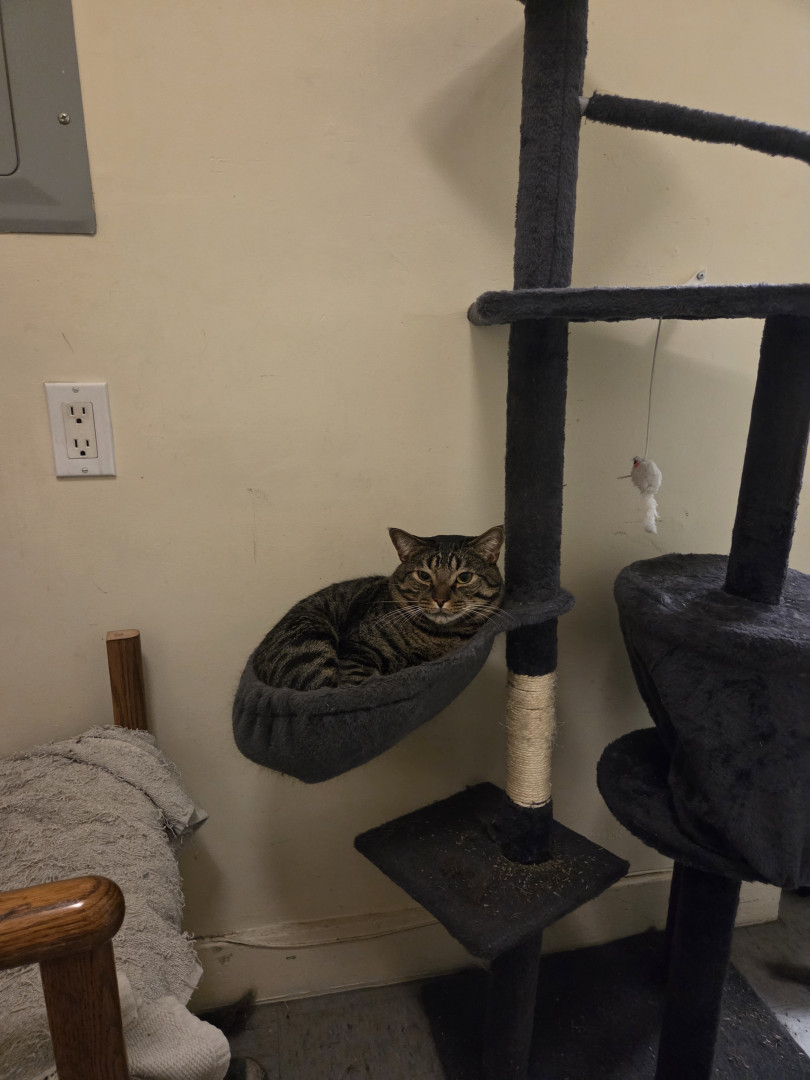 He is the cutest as he was very tiny when I got him but now he's a little chubby. The reason is as my older cat eats less and Spicoli eats his leftovers lol.
