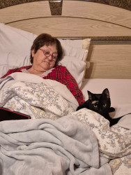 he walks by my side to the kitchen for dinner, and waits until the covers are down on my bed,, to climb and snuggle with me