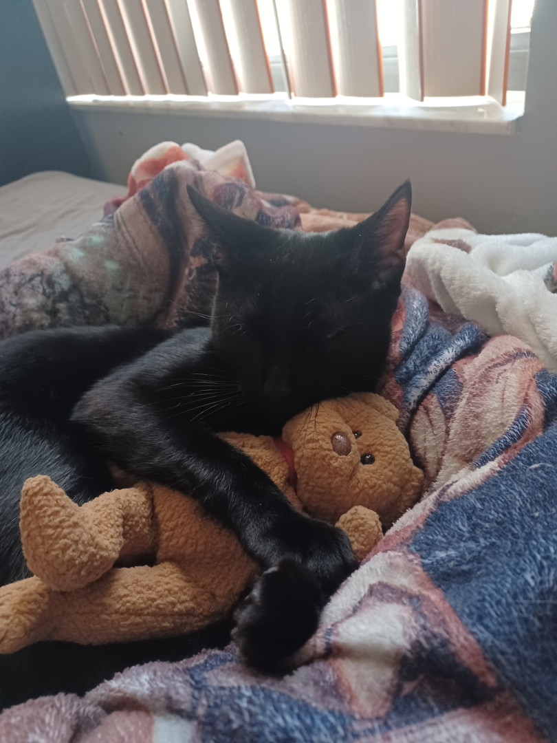 Spooky is a 2 year old male cat who loves the sun and playing. He can be your best friend and protect you like a dog would. Loves Nap Time.