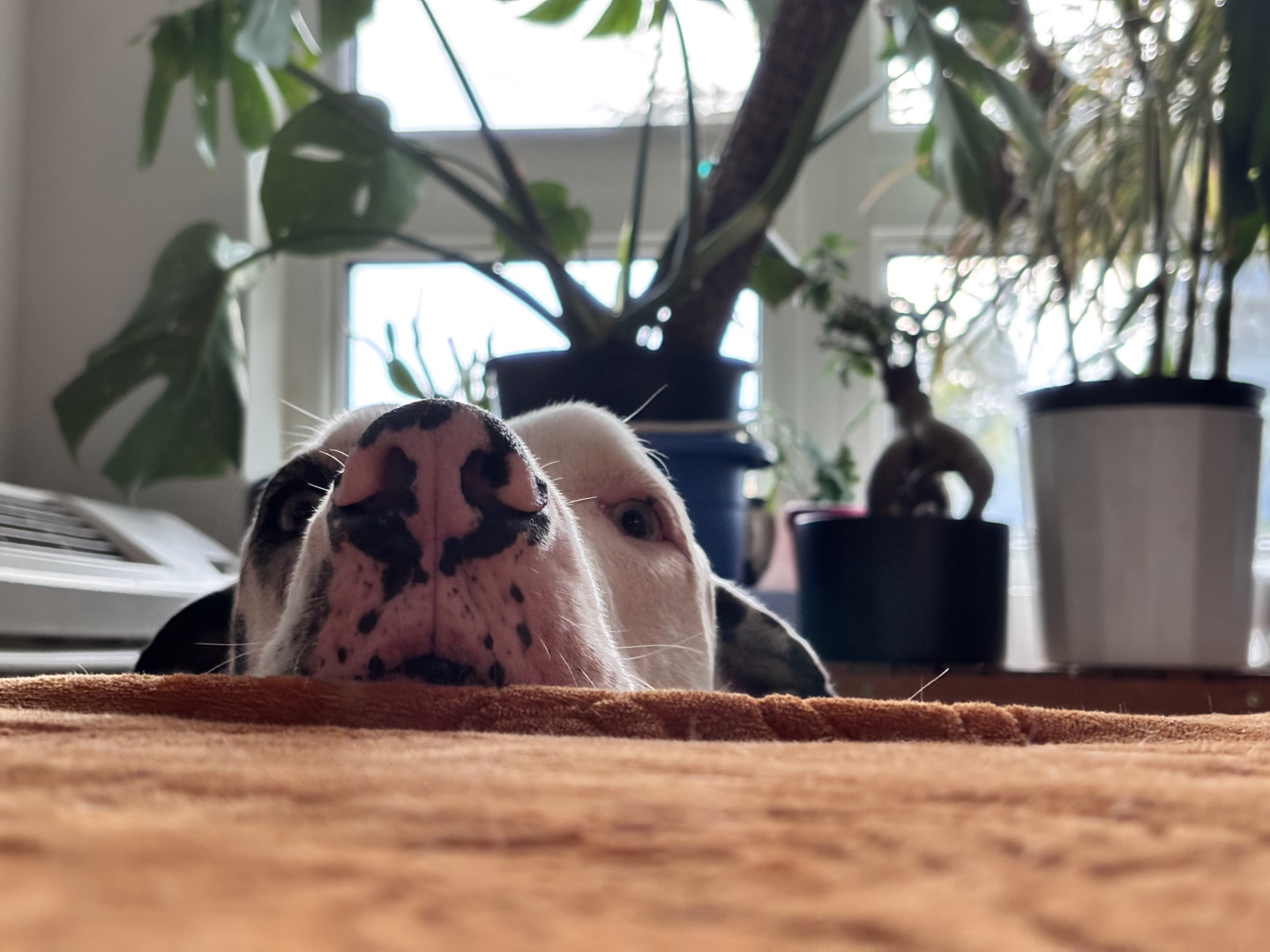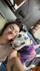 I found this goober dumped in the woods. I don’t go anywhere without him. Hes even comes to work with me. Im blessed to have my soul dog. 💗