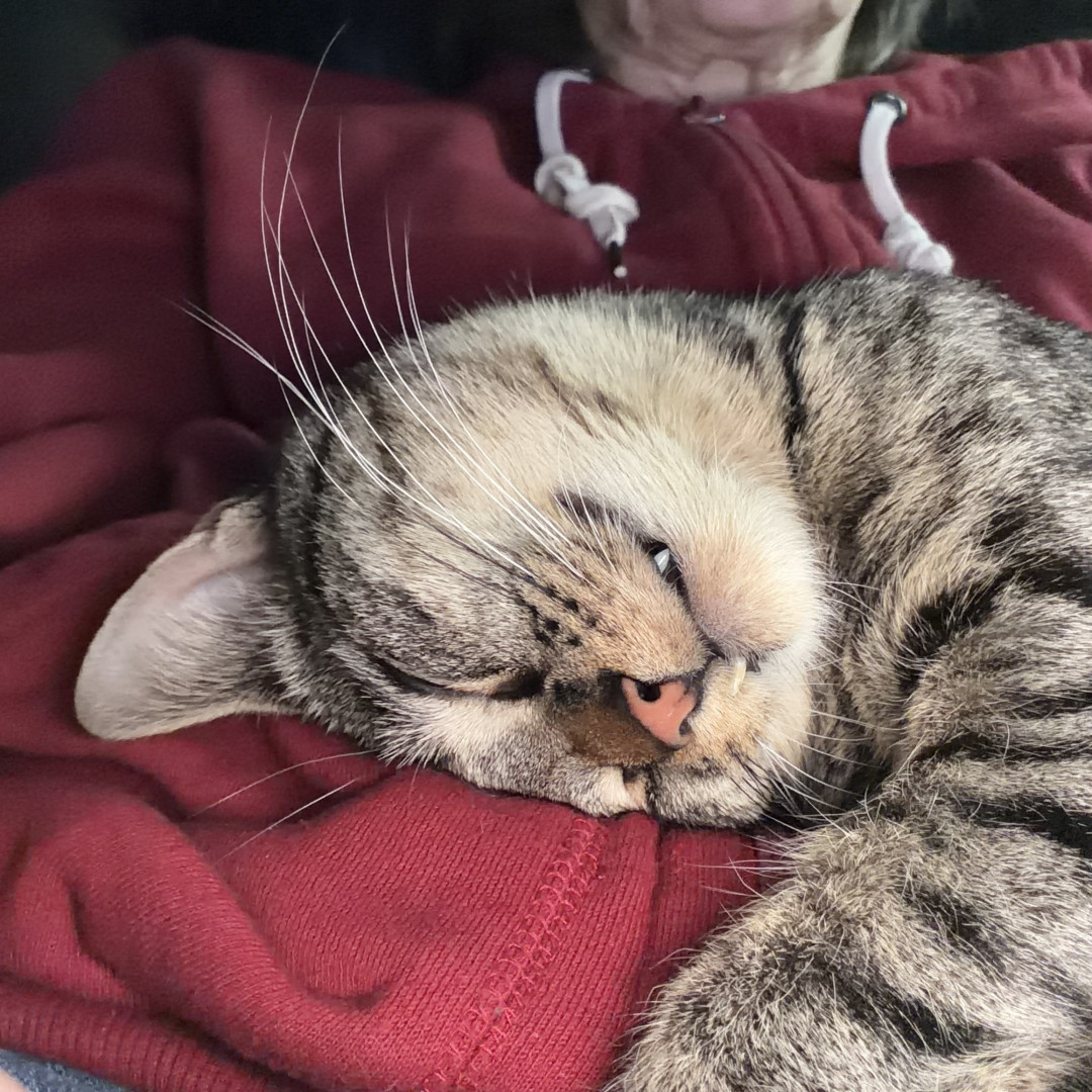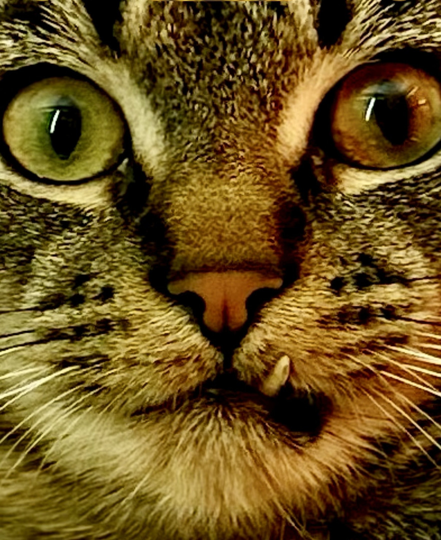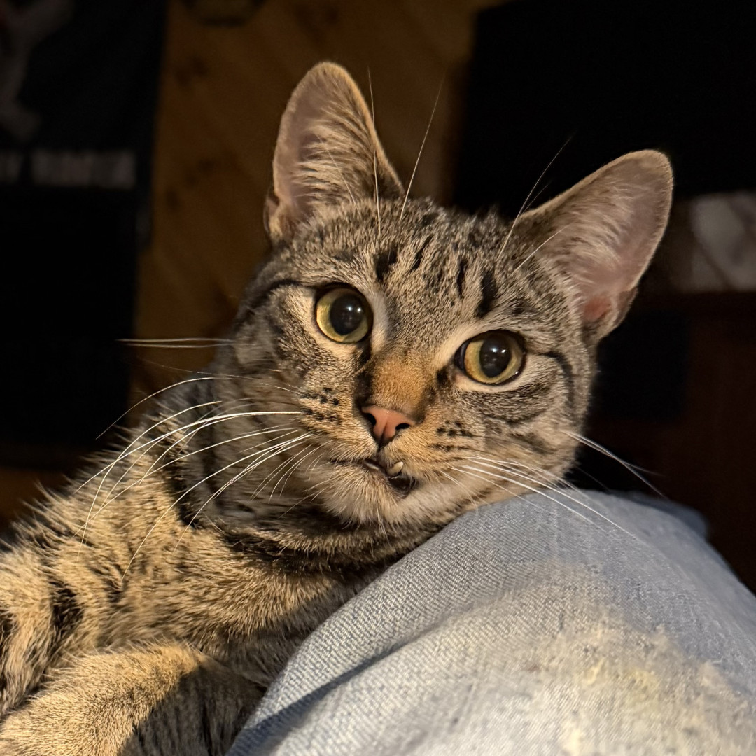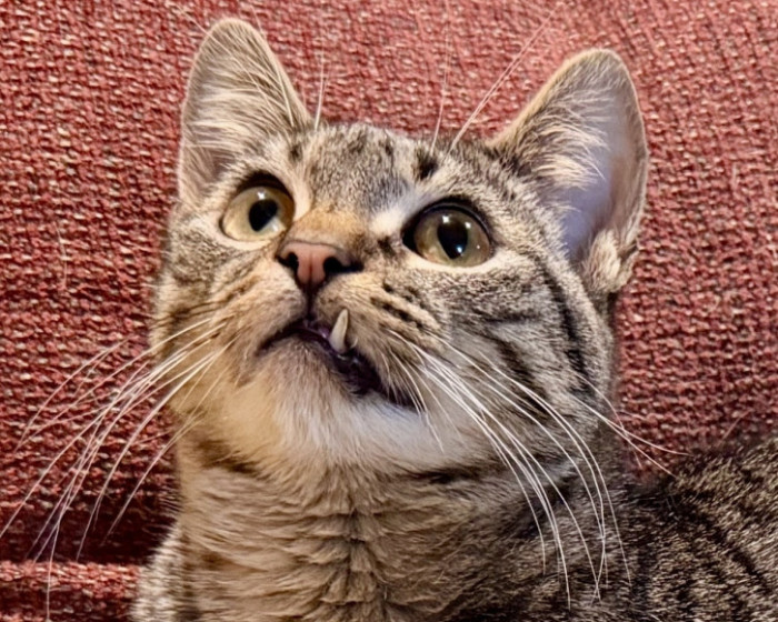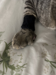 Sprat was horribly abused when he was ~ 4 wks old. Fractured jaw, head trauma & nerve damage to his front leg. Forever grateful to have him!