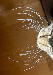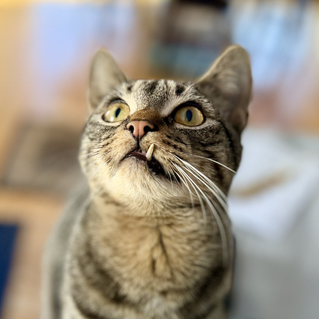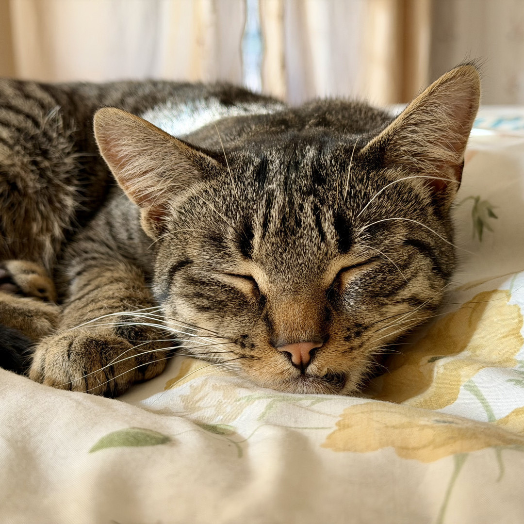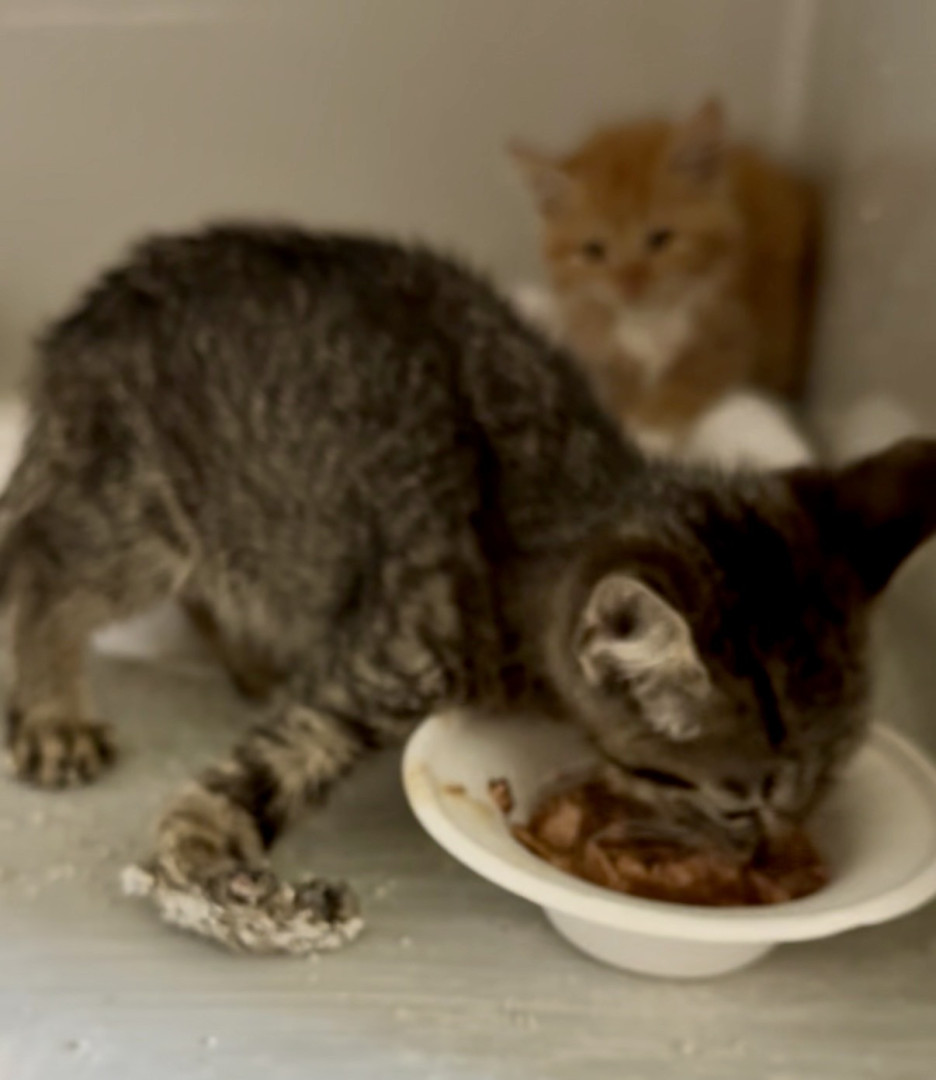 Sprat was horribly abused when he was ~ 4 wks old. Fractured jaw, head trauma & nerve damage to his front leg. Forever grateful to have him!