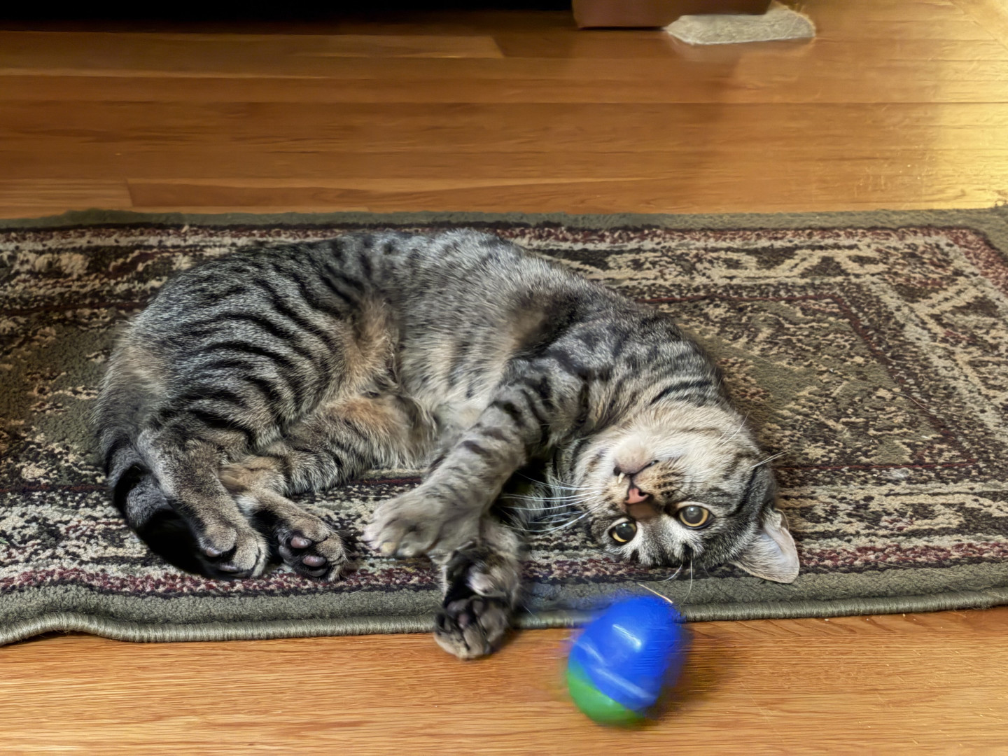 Receive Text UpdatesSprat is lover of any toy, particularly partial if catnip accompanies it! He also loves “Temptation “ Treats. His mom loves them too because they are a little less than 2 calories a piece.