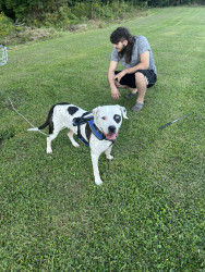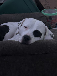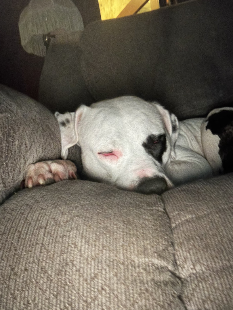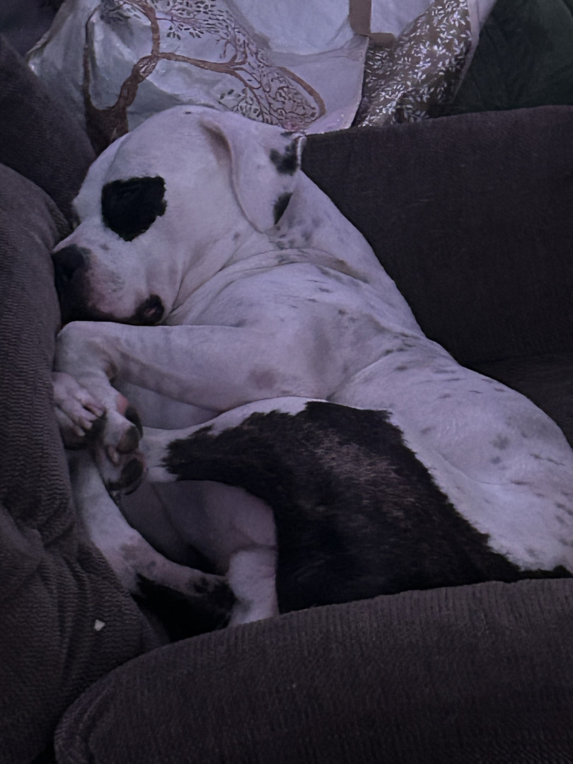 Since he is considered a “dangerous” dog due to him being a pitbull, he is kind of looked over. People are scared because pit bulls are seen as aggressive and harmful. He was neglected for two years before we rescued him. He was completely silent until recently. We have been teaching him to bark and howl. When we got him he was the happiest puppy in the world. Now that we brought him into our family and with his baby brother on the way, he can enjoy life to the absolute most.
