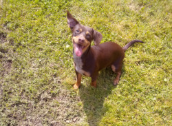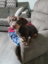 Squirly is just awesome! She loves to cuddle,and go for walks. She's constantly jumping off of things and loves swimming.