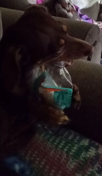 She loves her squeeky ball and loves all yum yum treets.
