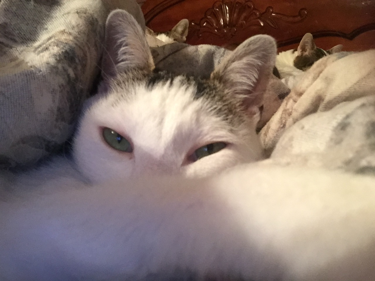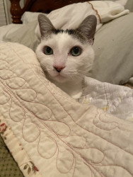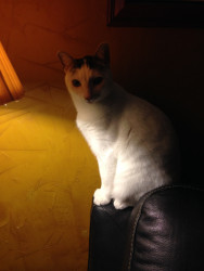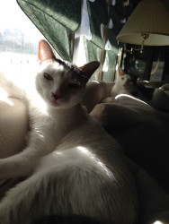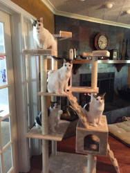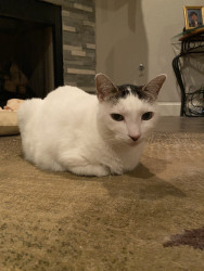 She is very petite, prim and proper. She doesn’t sit or lay like most cats. She always has to have her tail curled around her legs when sitting. And, always has to be curled into a small ball when sleeping. Star has 3 twin siblings.