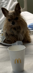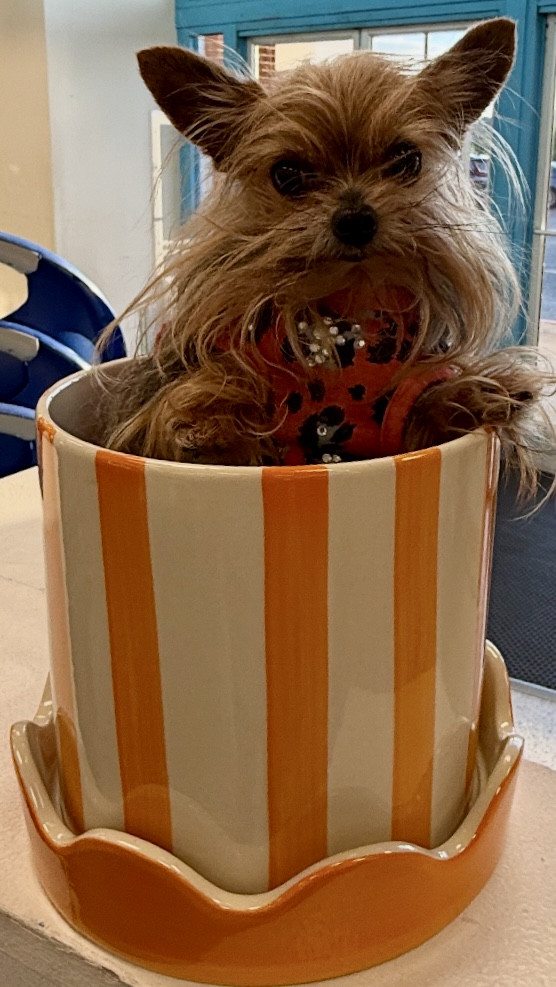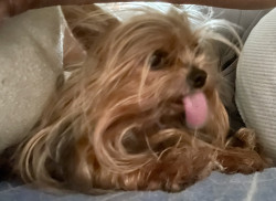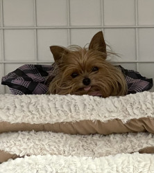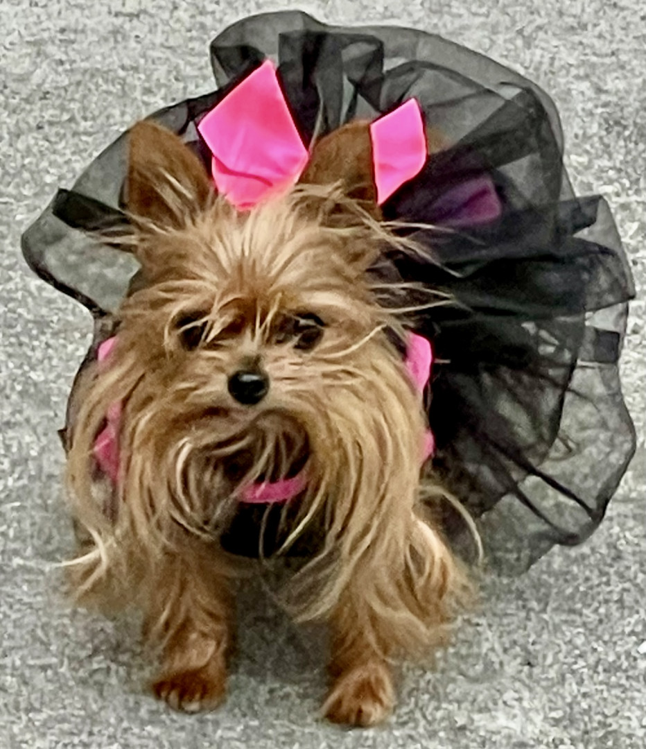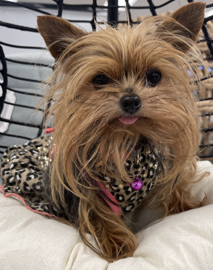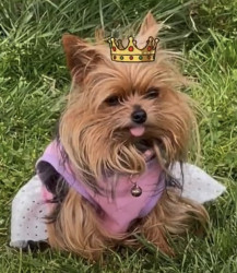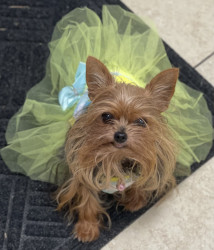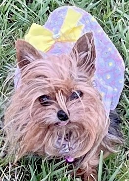 Stella is a 10 year old 2.4lb. Yorkie who loves everyone she meets, except for her aunt Sugar who roughed her up when she was a puppy lol