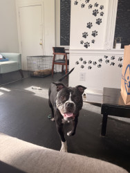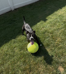 Receive Text UpdatesStella loves any toy that squeaks loudly and is able to play "tug of war" with. Her favorite treats are celery sticks. She jumps and does tricks for them.