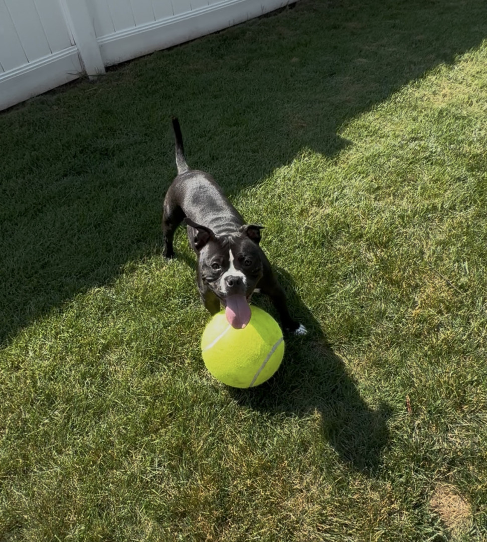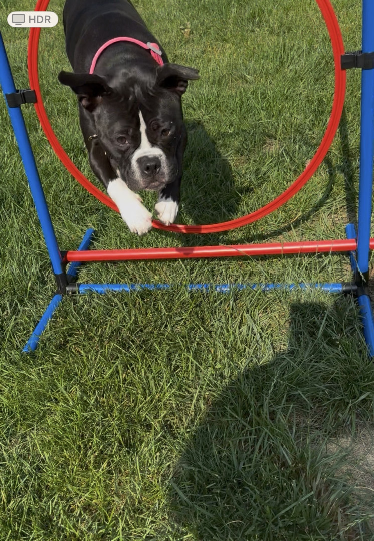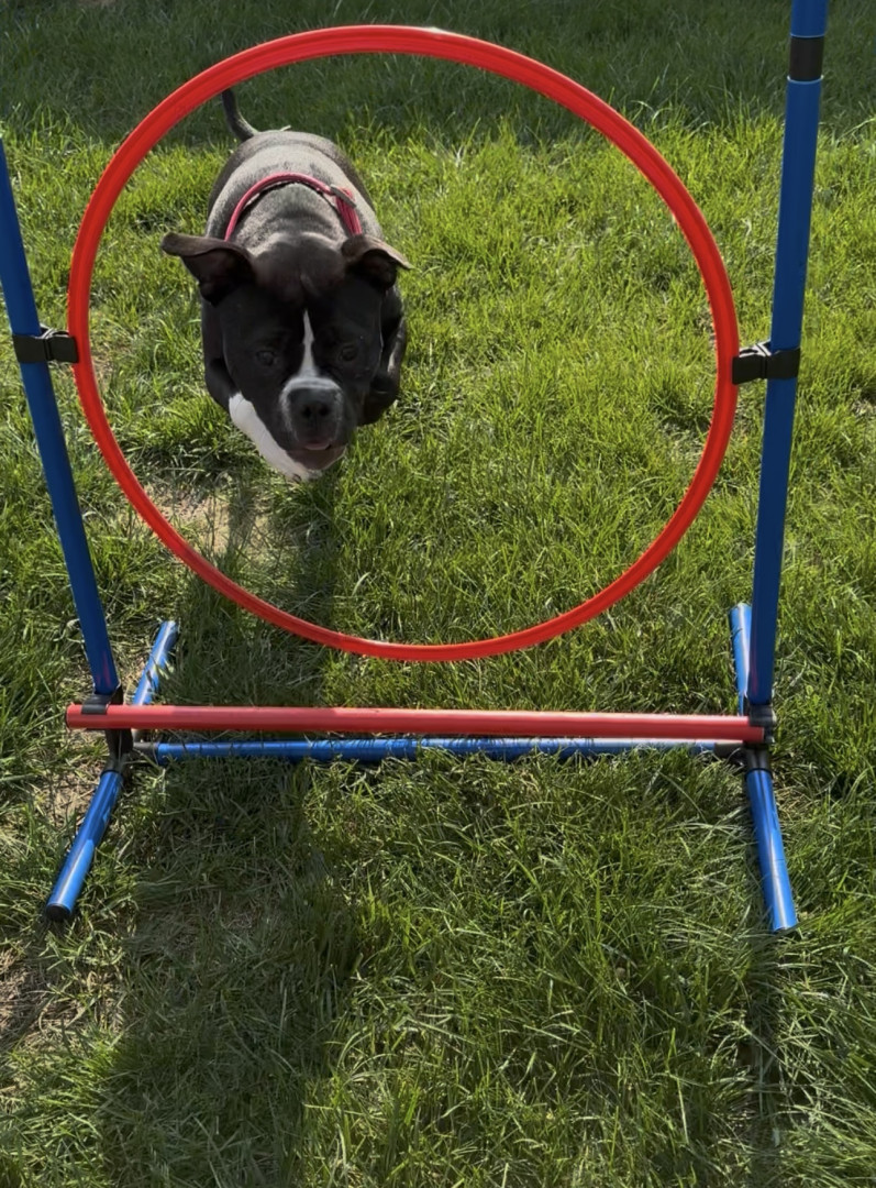 Stella is a ball of endless, fun energy. Regardless of the day or time, she is always up to play and eager to please. She can jump extremely high and literally through hoops.