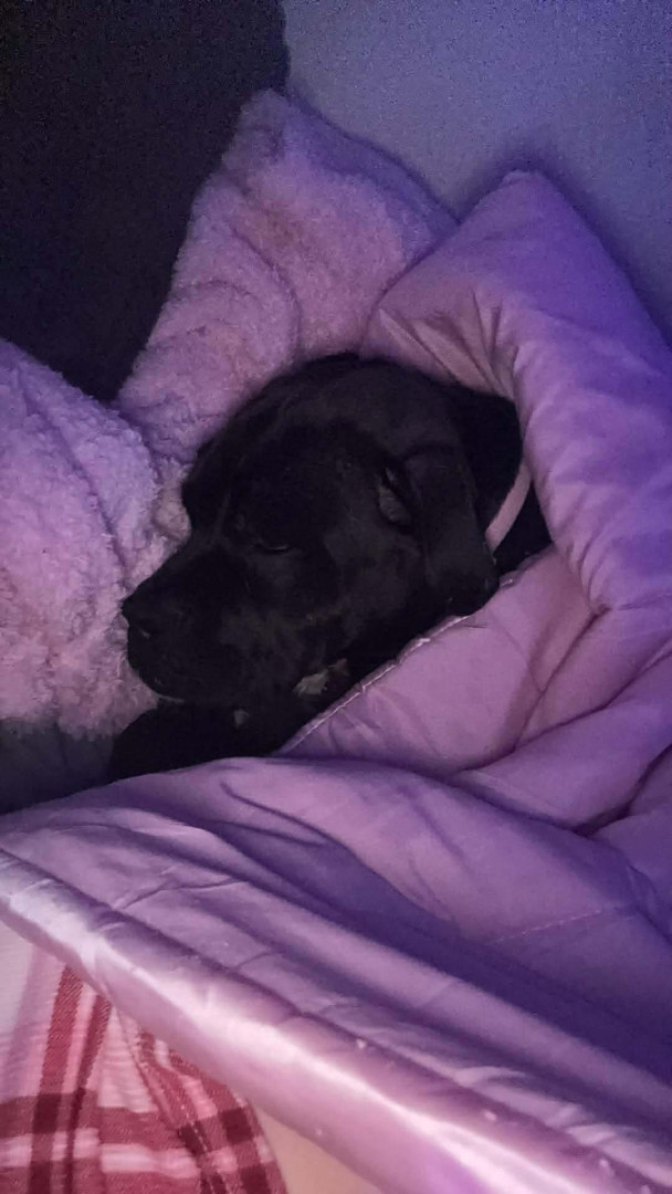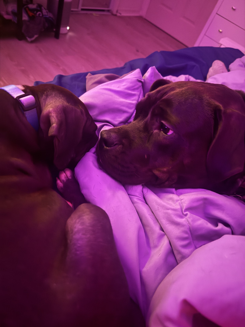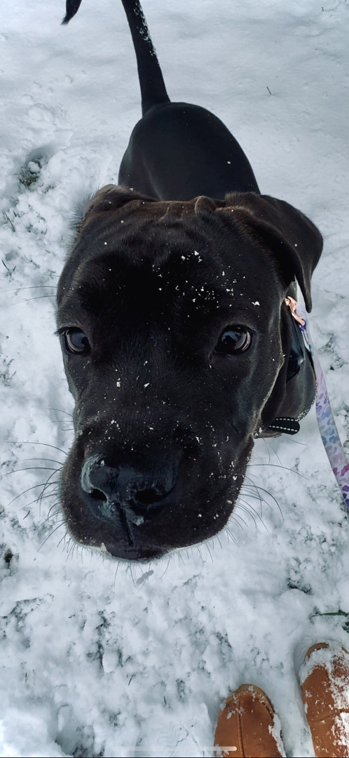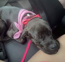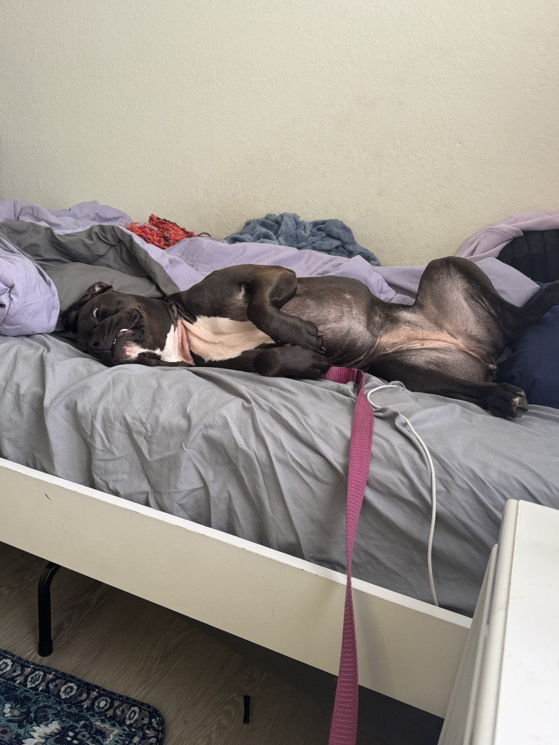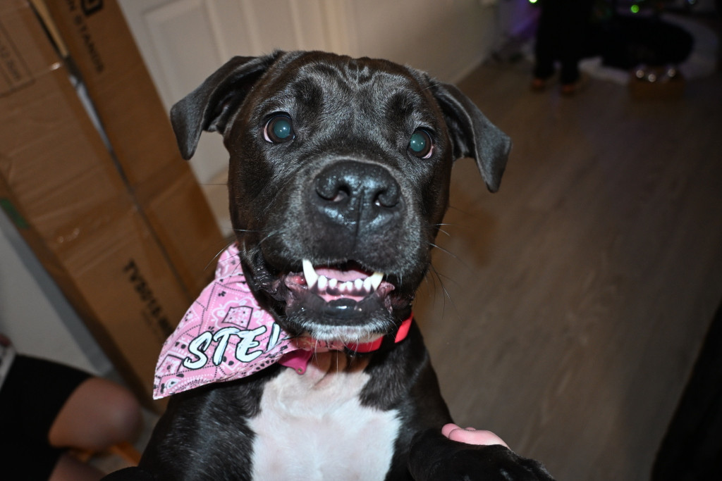 Stella is a 2 year old rescue! We don’t know her breed unfortunately, but we do know she’s a goofy, loving, cuddly little drool monster!