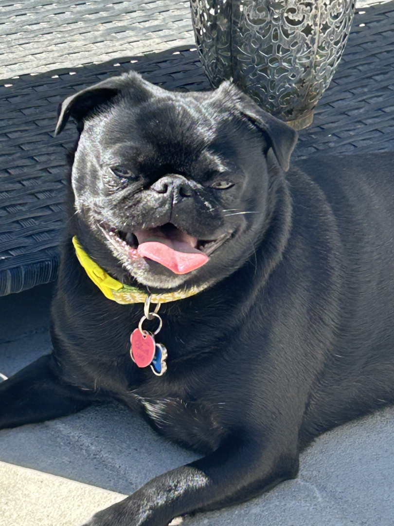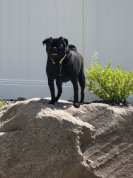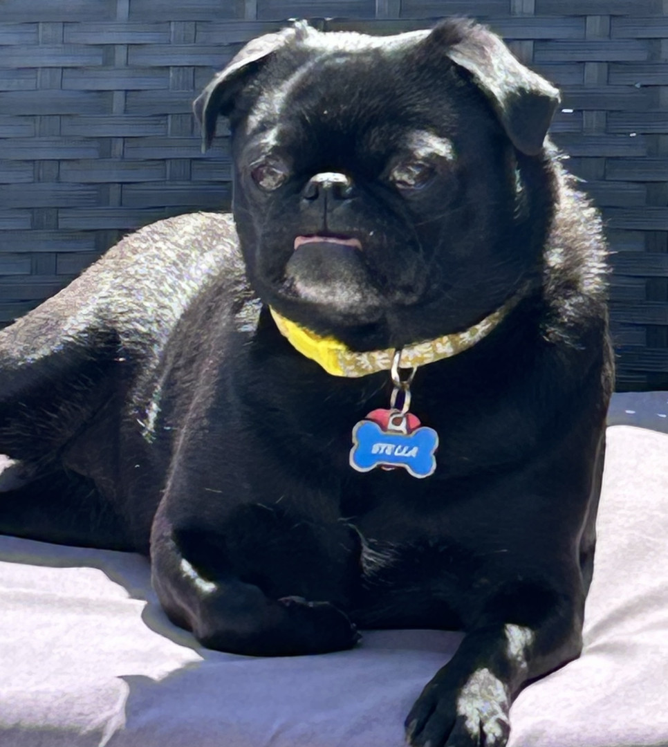 Stella is absolutely stunning! Her little smooshed face is the cutest. She is charming, funny great with kids overall temperament is exquisite.. She is confident and know she is the queen of our house hold.. she represents love, happiness, laughter, and loyalty!