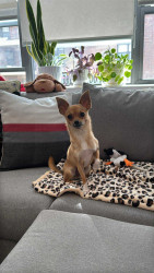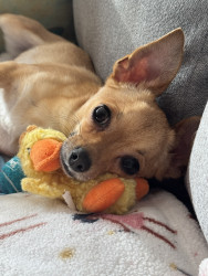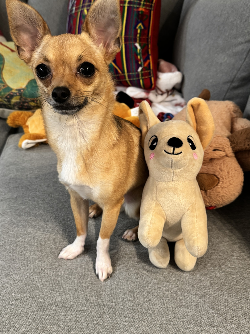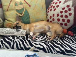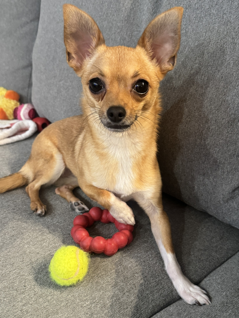 Stella is a rescue from Arkansas. She is a funny little pup with a huge personality. She loves to play fetch, bones, and belly rubs.